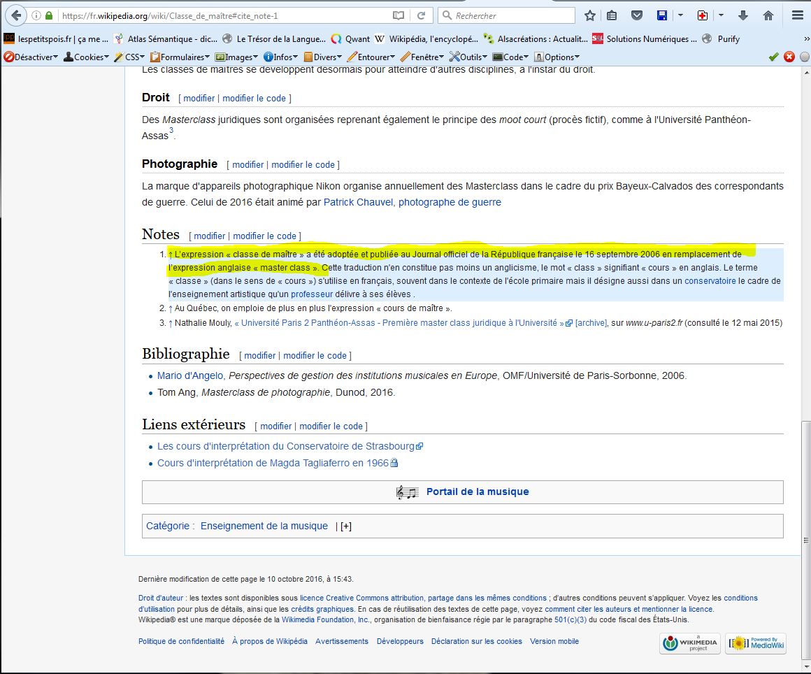 On peut en effet encore une fois dire merci aux petites mains du Wikipédia qui ont écrit en bas de page de l’article “classe de maître”: