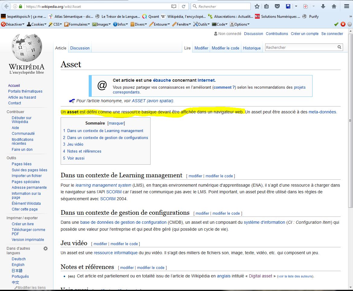 [Et]un asset est défini comme une ressource basique devant être affichée dans un navigateur web. (https://fr.wikipedia.org/wiki/Asset)
