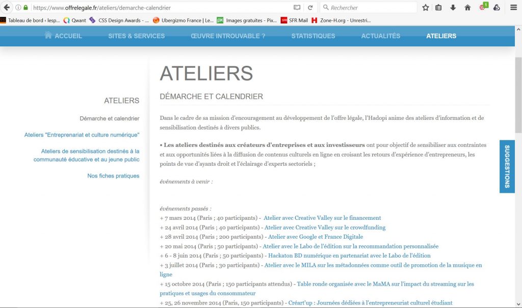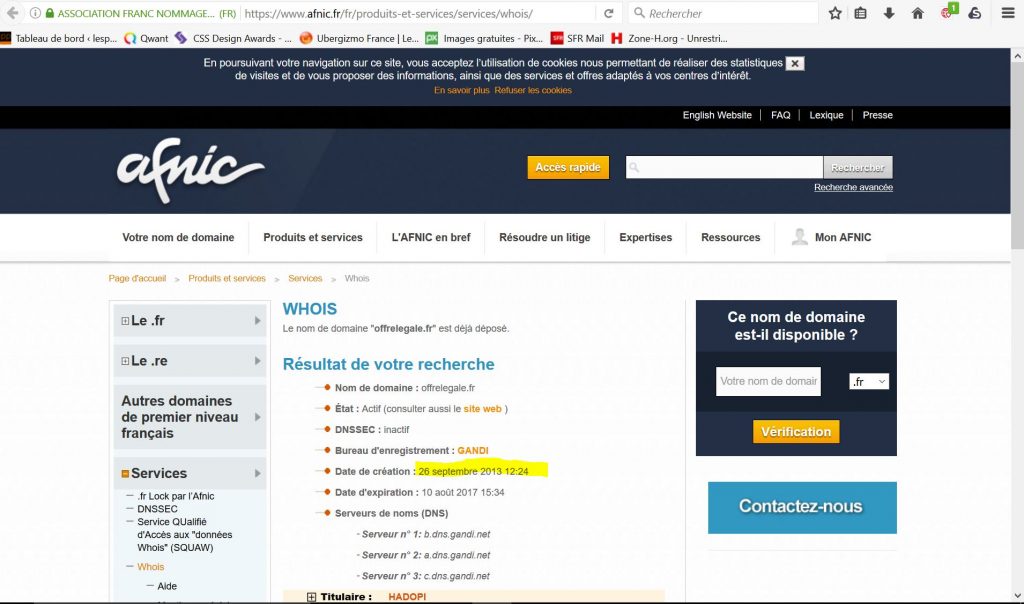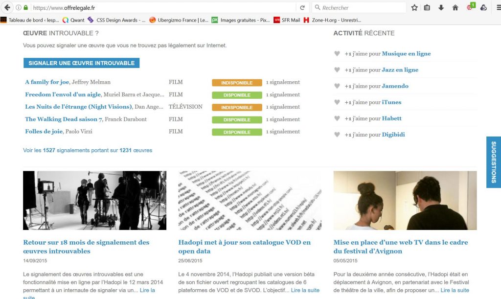 Mission 2: promouvoir le développent des offres légales. Création d’un site Internet: offrelegale.fr. Dépot du nom de domaine: Septembre 2013: