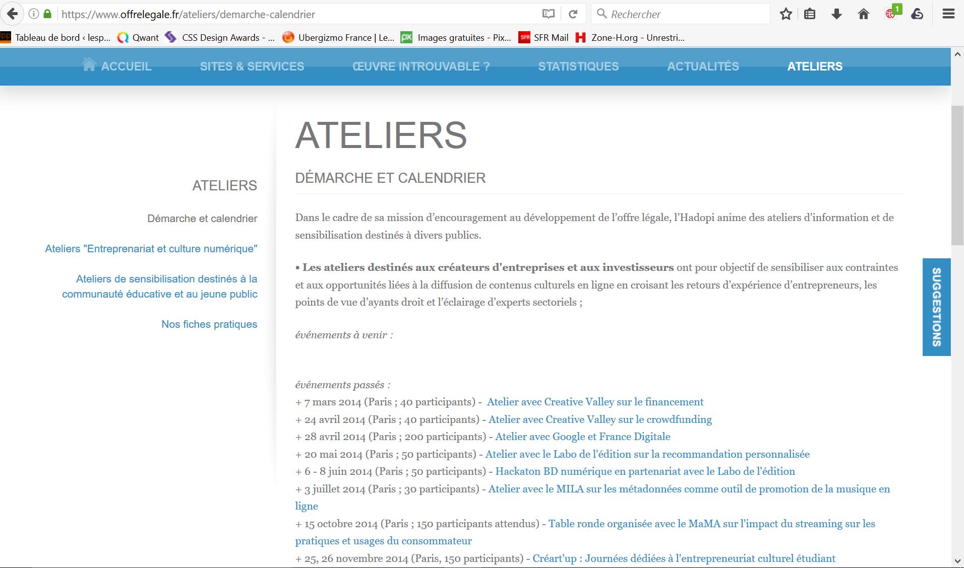 Mission 2: promouvoir le développent des offres légales. Création d’un site Internet: offrelegale.fr. Dépot du nom de domaine: Septembre 2013: