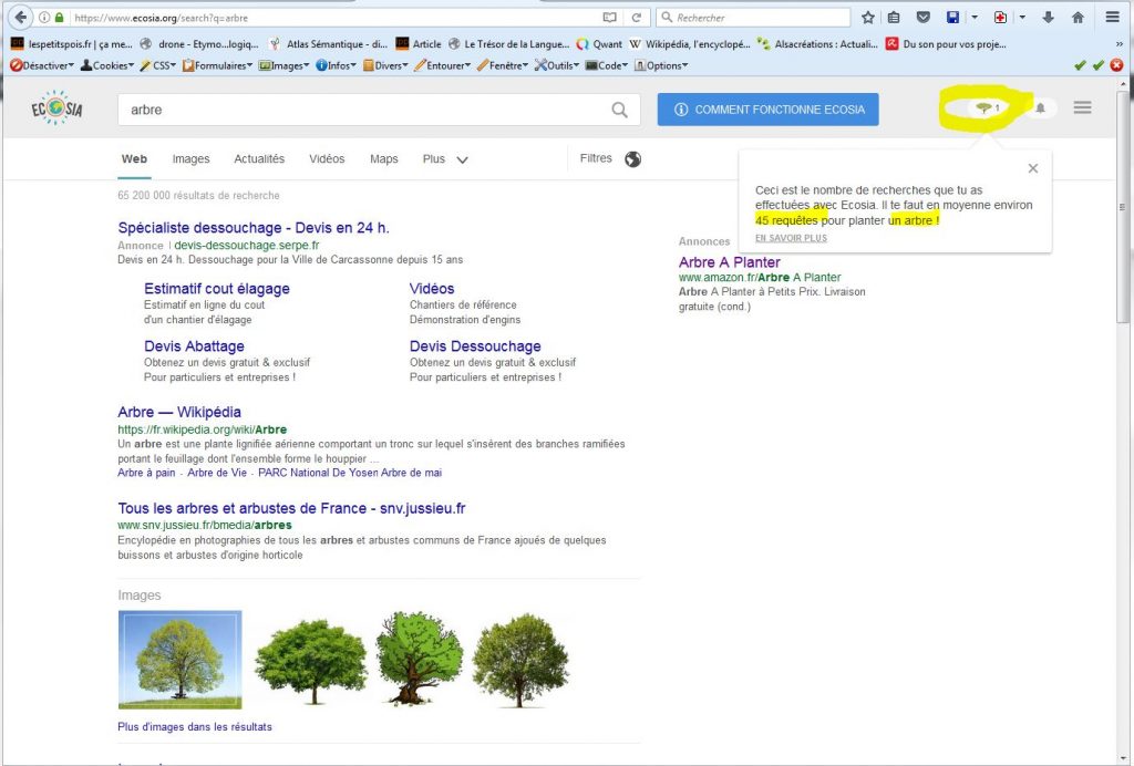 Évidemment, une seule recherche ça ne suffit pas, mais il est mentionné qu’en moyenne il faut 45 requêtes pour planter un arbre. Et je pense que c’est faisable assez rapidement :