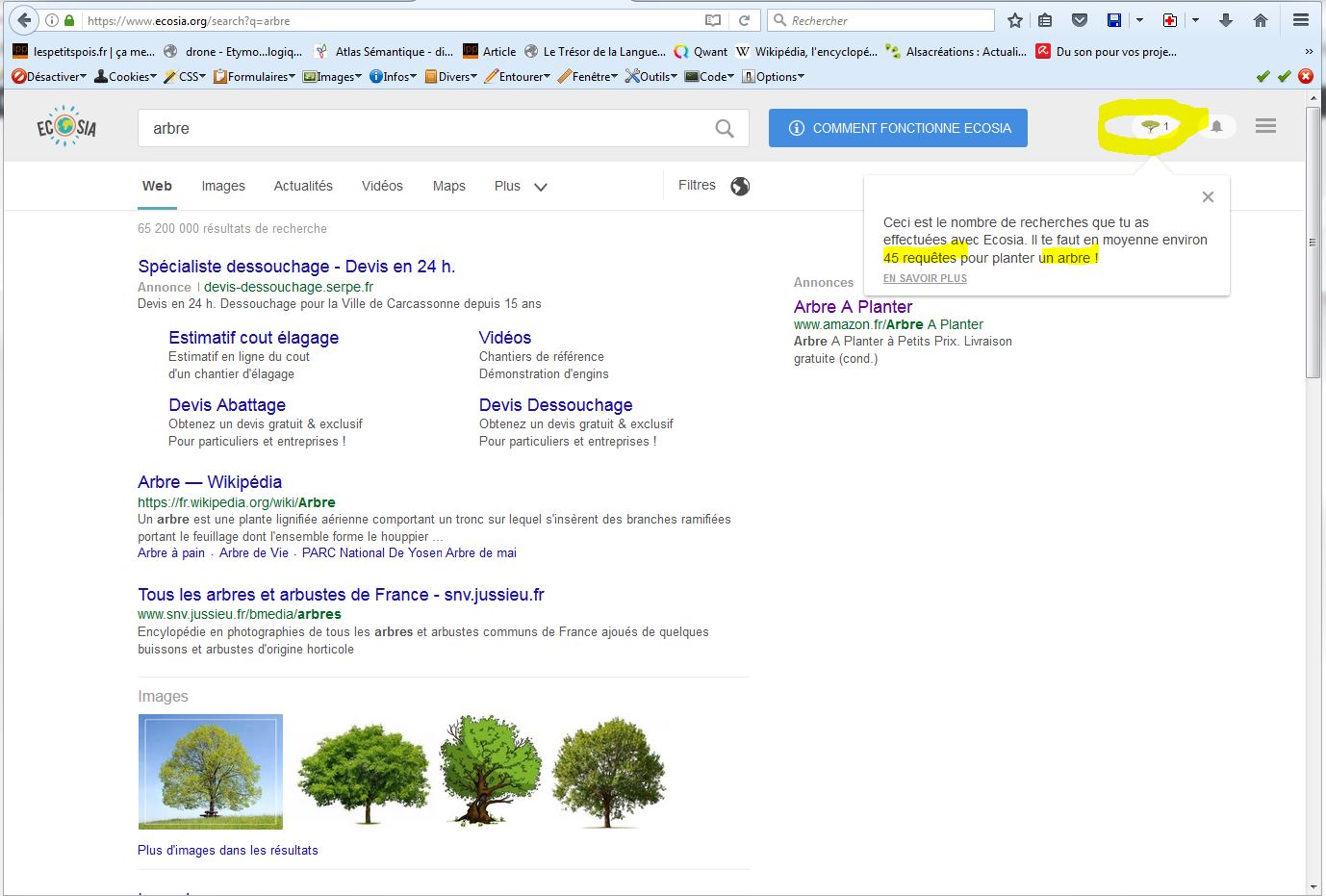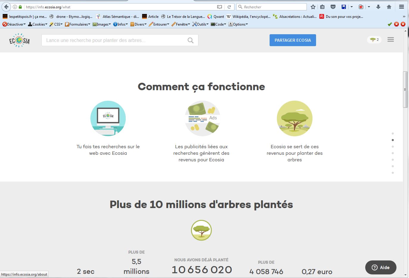 NB: techniquement derrière ecosia, le moteur est celui de Bing pour la recherche et Yahoo pour les pubs.