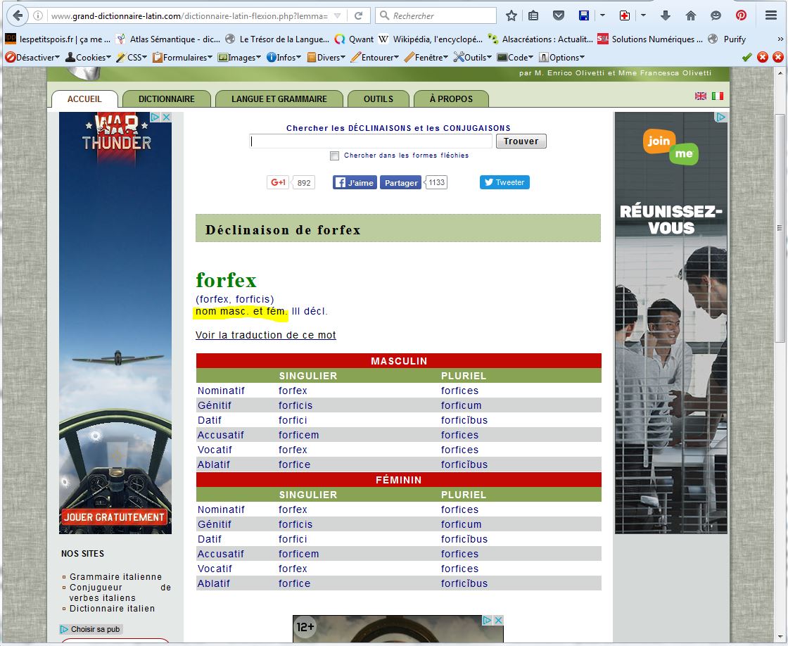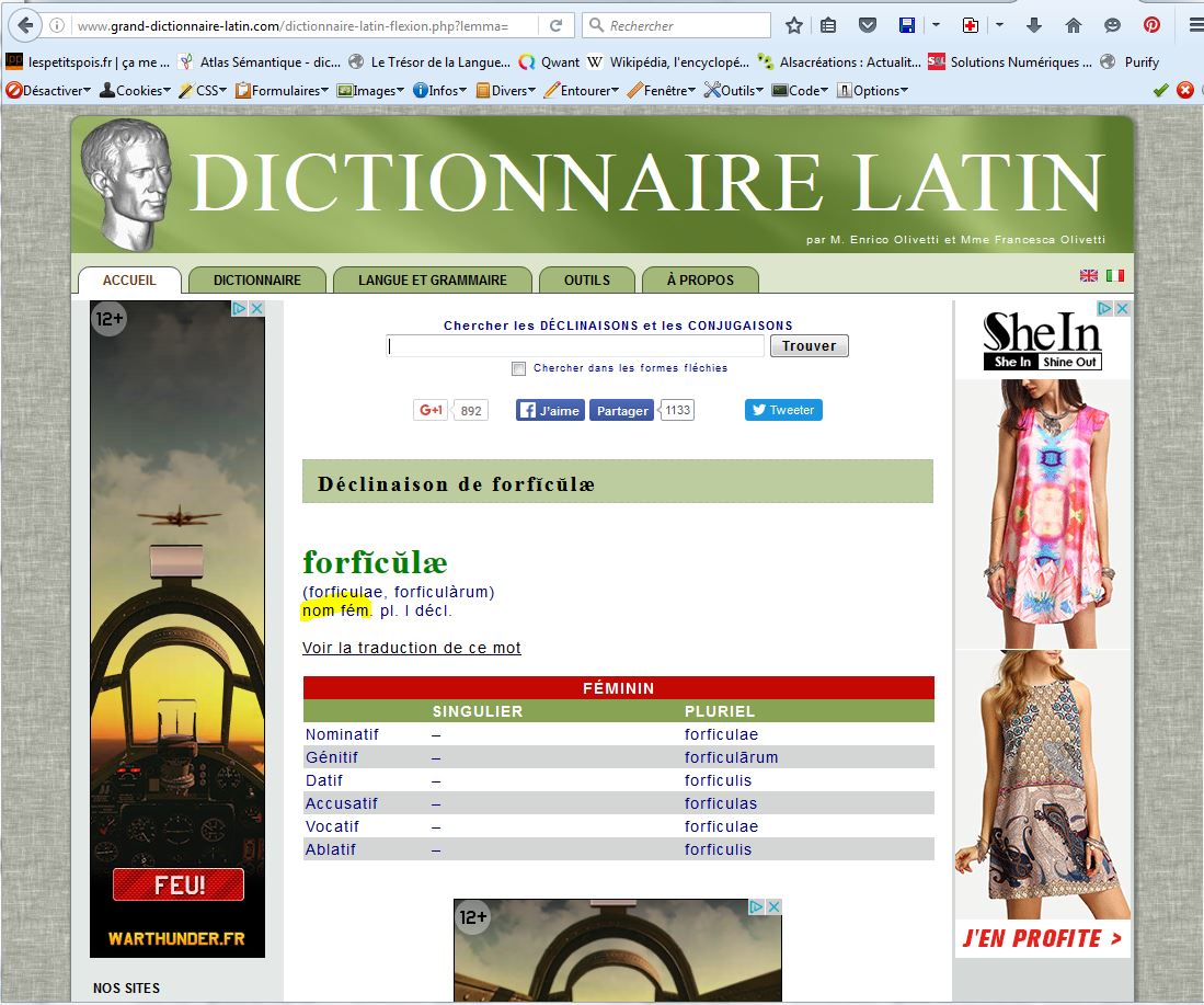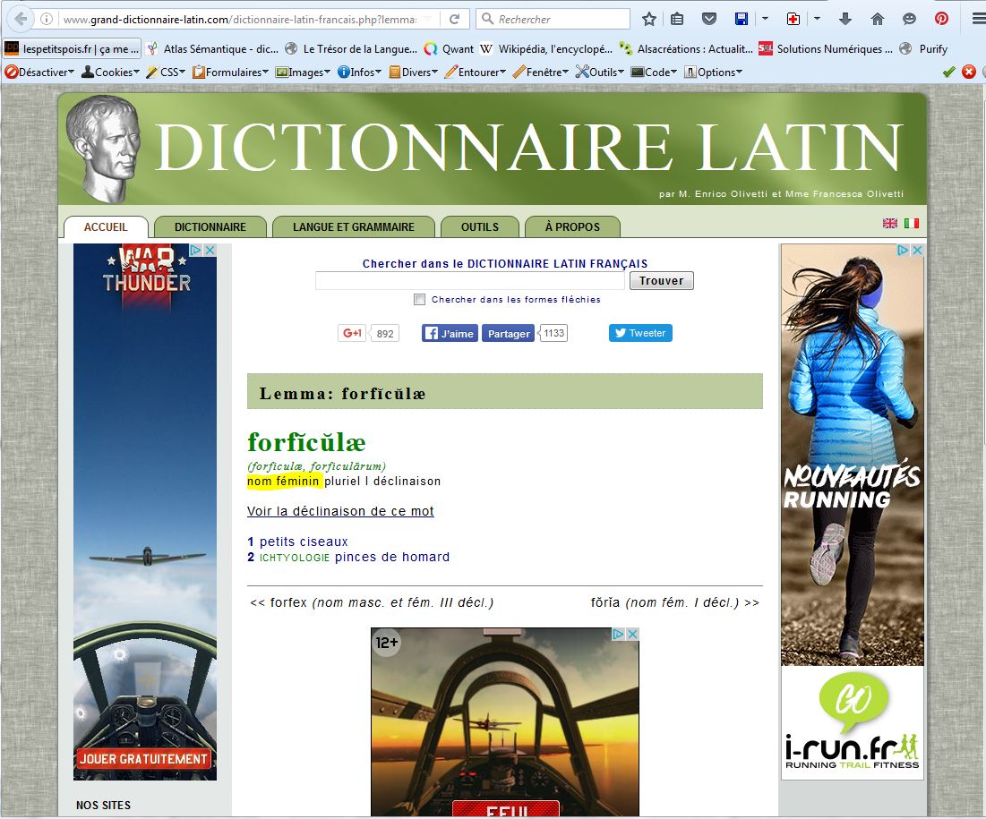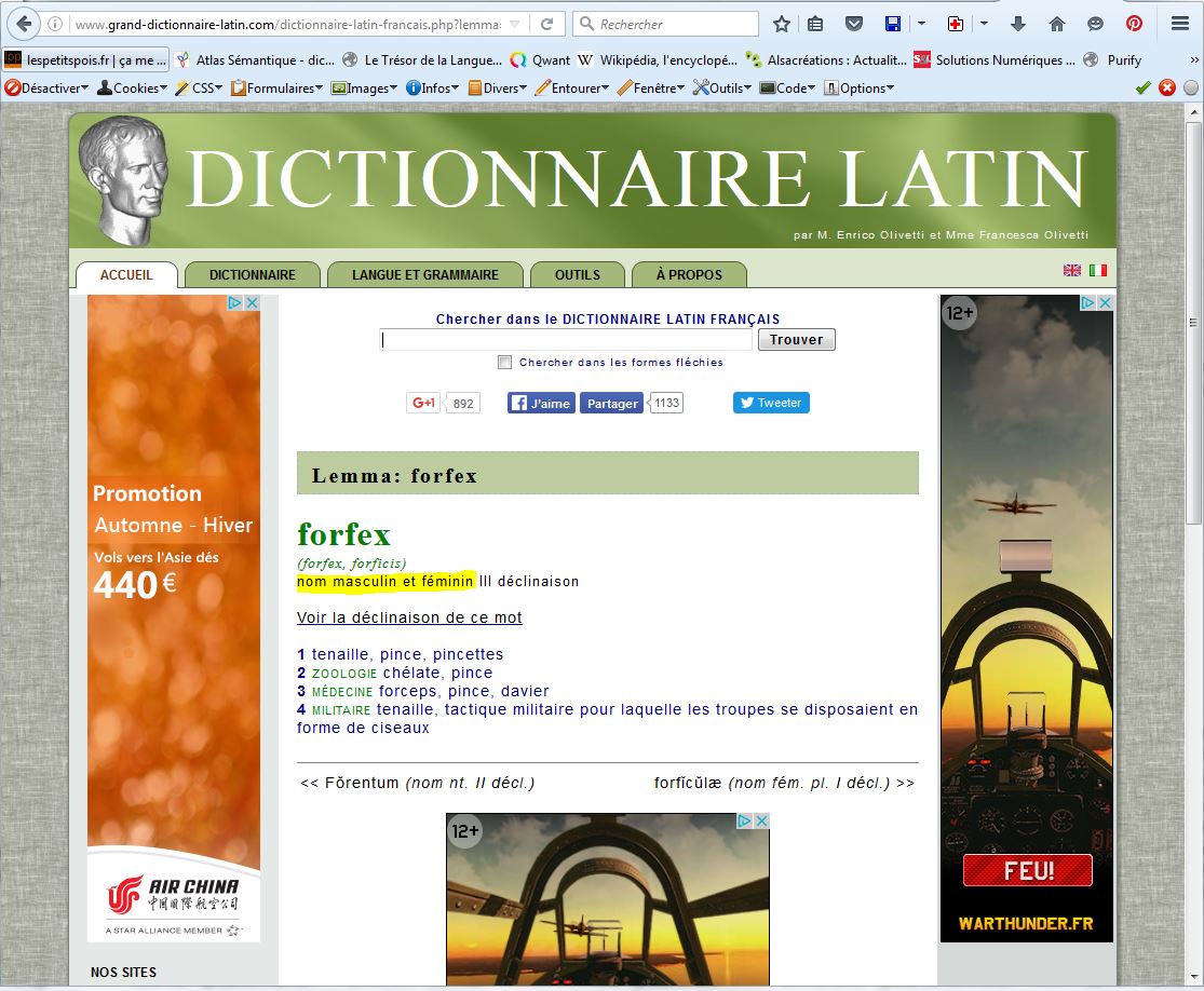 En 2nde conclusion, je pencherai quand même pour le genre féminin. En effet, même si selon le Littré et le Robert foficula serait le diminitif de forfex, mot à la fois féminin et masculin selon l’Olivetti, je ne trouve pas de justification pour la masculinisation du mot dans le Robert sachant qu’il traduit en outre forfex par “forces”…nom féminin: