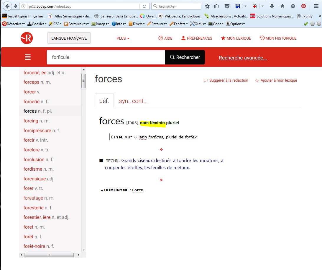 Le Wikipédia s’arrête au Larousse et au Robert, moi j’ai poussé un peu plus loin, évidemment. (Rq: le Robert, c’est le seul qui soit payant. Pour la peine , j’ai du souscrire à la version d’essai de 10 jours… gratuite donc, heureusement):