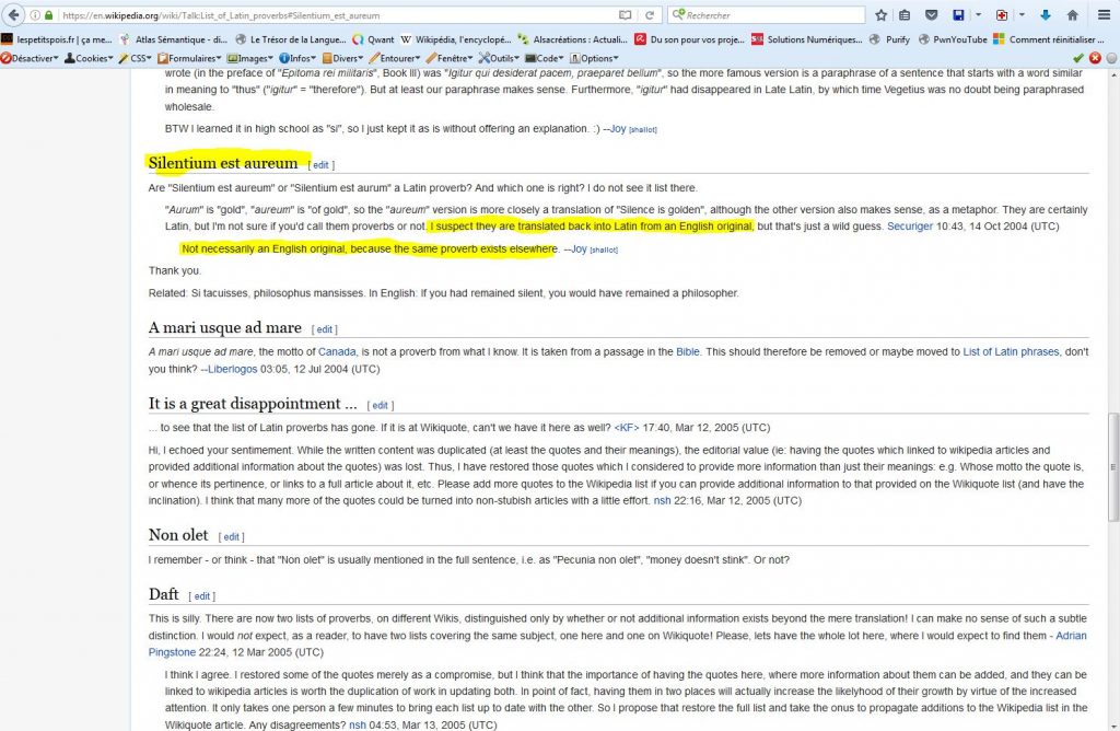 (https://en.wikipedia.org/wiki/Talk:List_of_Latin_proverbs#Silentium_est_aureum)