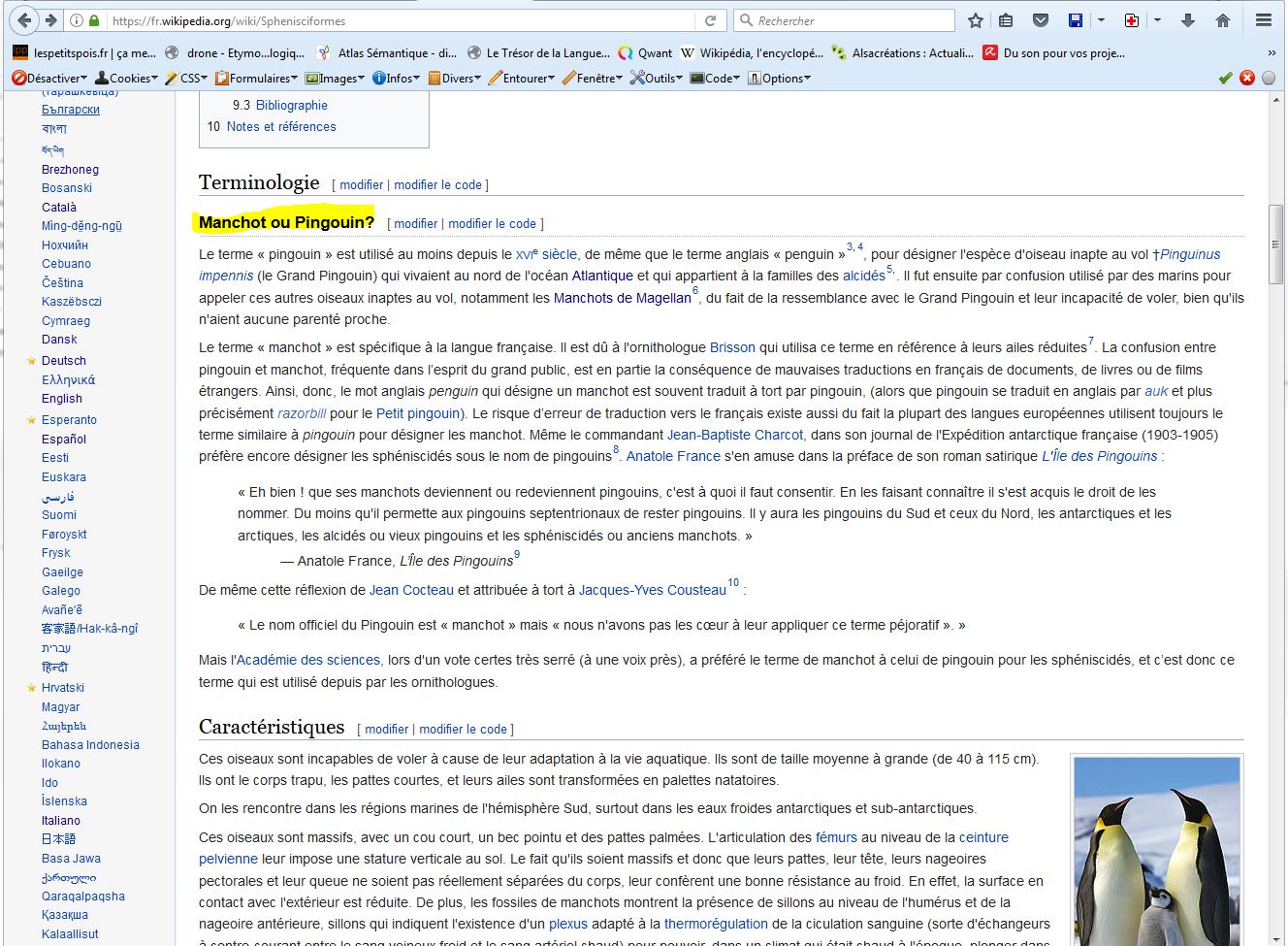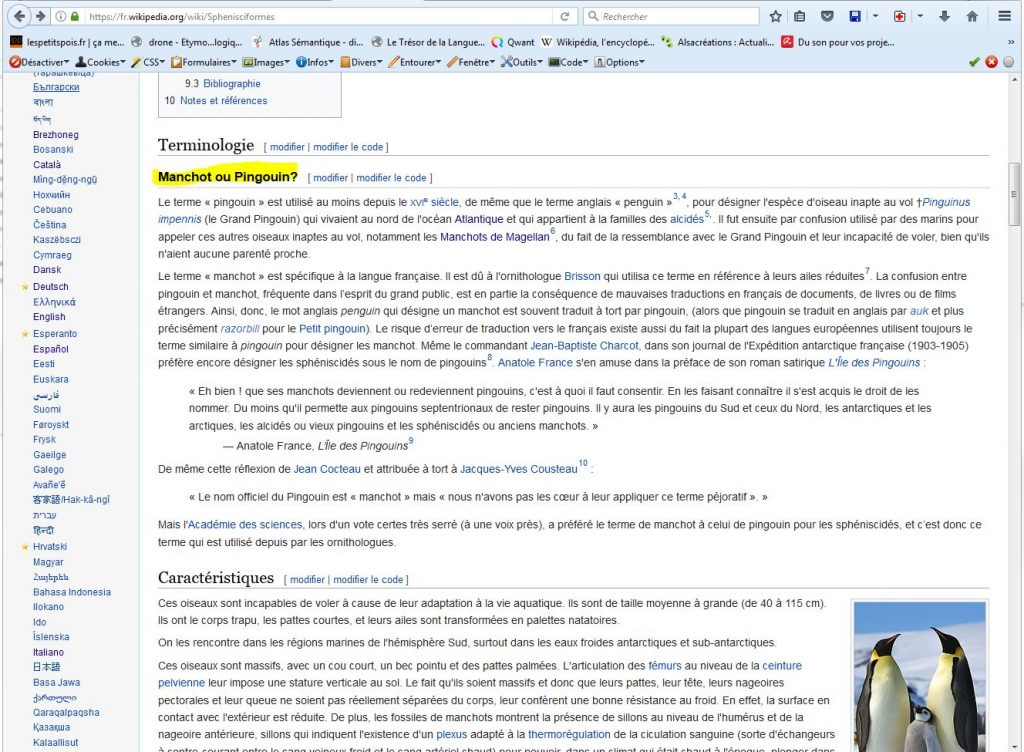 « Le nom officiel du Pingouin est « manchot » mais « nous n’avons pas les cœur à leur appliquer ce terme péjoratif ». »