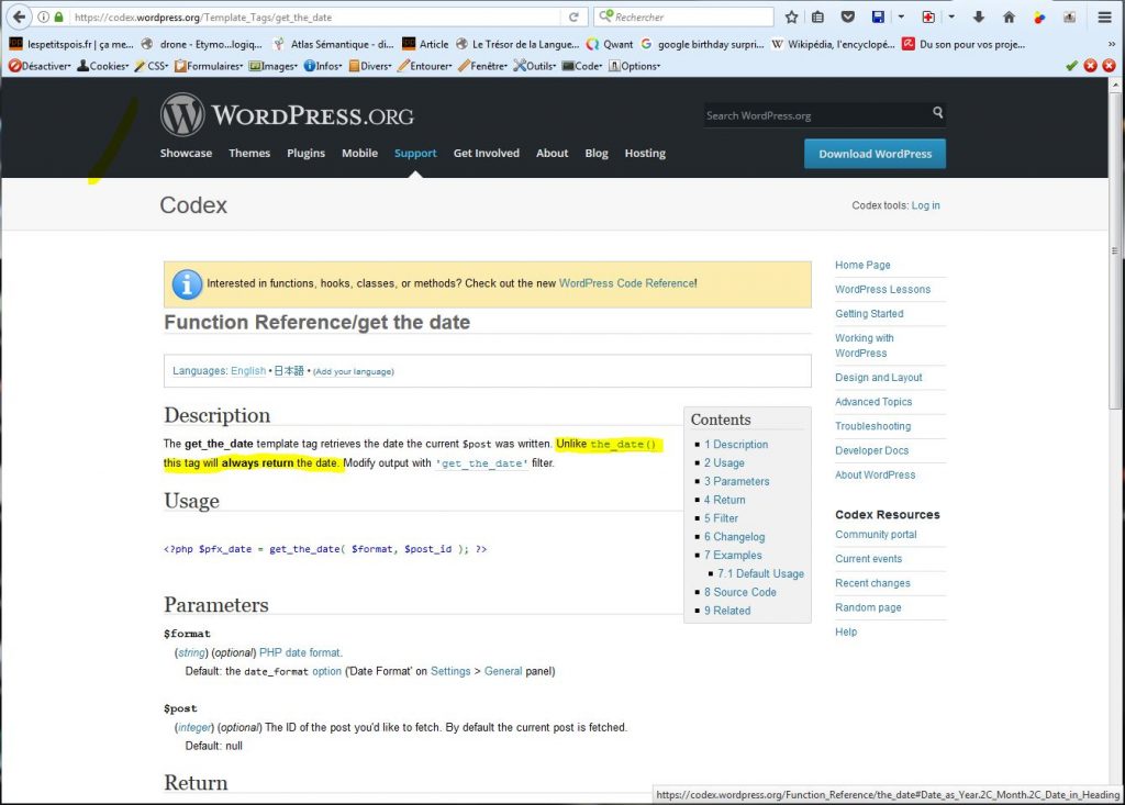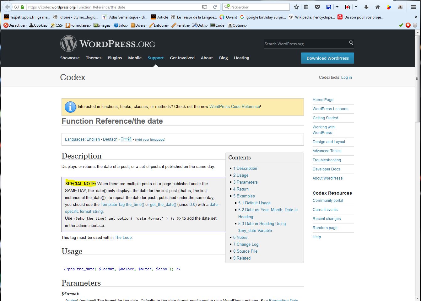 Si vous publiez plusieurs posts par jour sur votre WordPress et que certains posts de votre page “blog” (= liste de posts) ne comportent pas de date, c’est que certainement le thème que vous avez choisi utilise la fonction WordPress the_date dans le fichier php qui correspond à cette page.