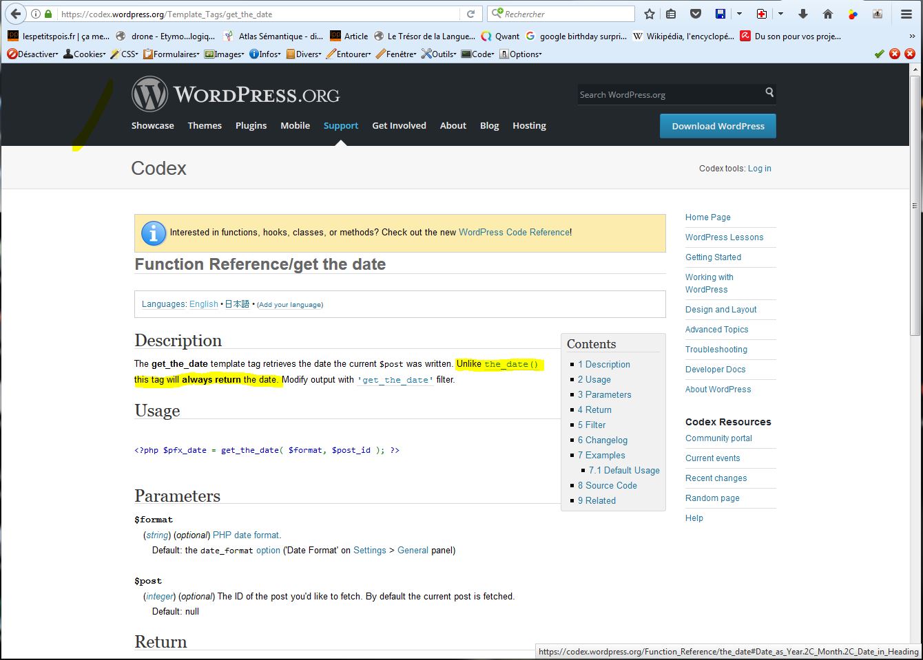 “qui, contrairement à la fonction the_date retourne toujours la date”: