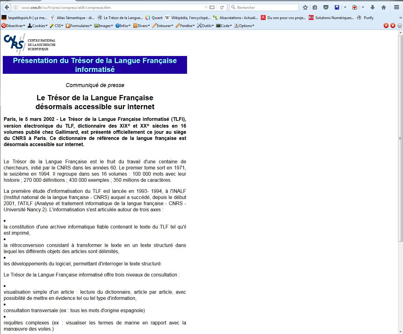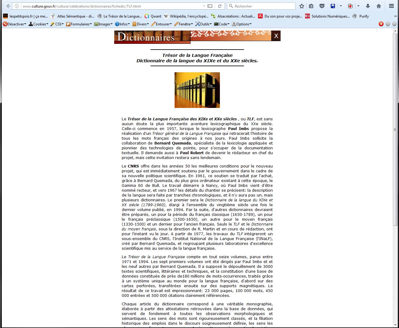L’idée de l’informatisation du Tlf germe vers 1990. Les travaux vont durer jusqu’en 2001. (cf Les grandes étapes du TLF et du TLFi).