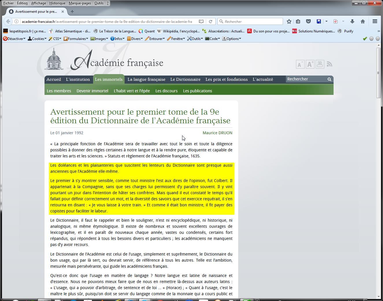 “Les doléances et les plaisanteries que suscitent les lenteurs du Dictionnaire sont presque aussi anciennes que l’Académie elle-même.”