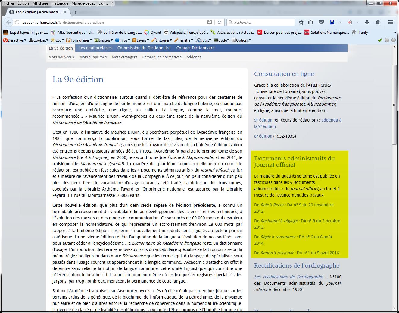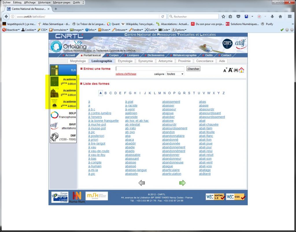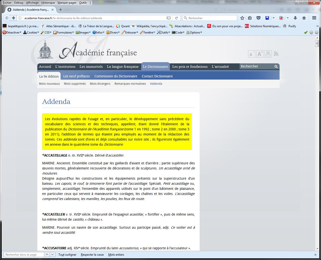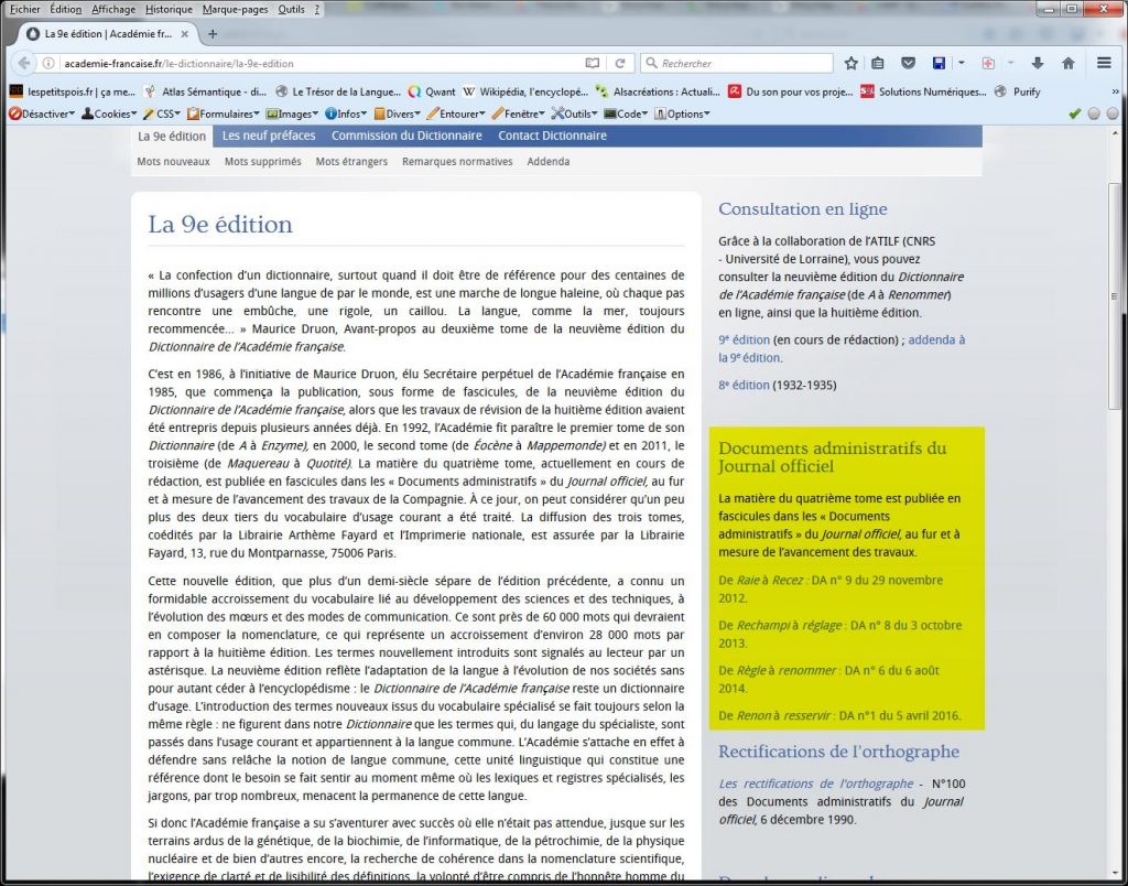 Cependant, le CNTRL n’est pas tout à fait complet. En effet, derrière son image décatie, l ‘Académie Française est consciente des évolutions de la langue. Surtout des termes techniques. Ainsi, sur son site, elle publie une liste de mots, sous l’intitulé Addenda, qui seront ajoutés au tome 4 à venir: