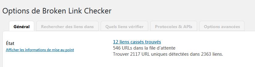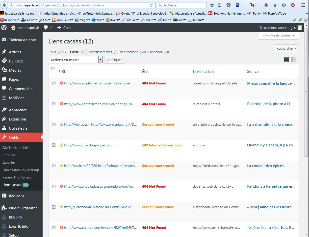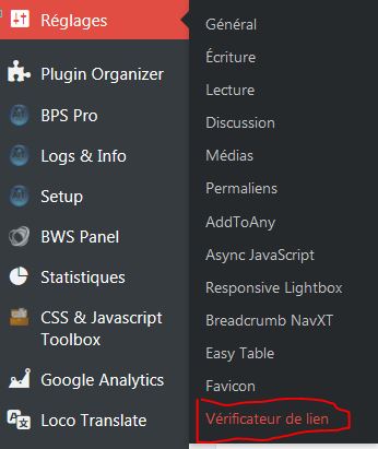 Pour ce faire j’ai installé un plugin sur lpp Broken Link Checker: