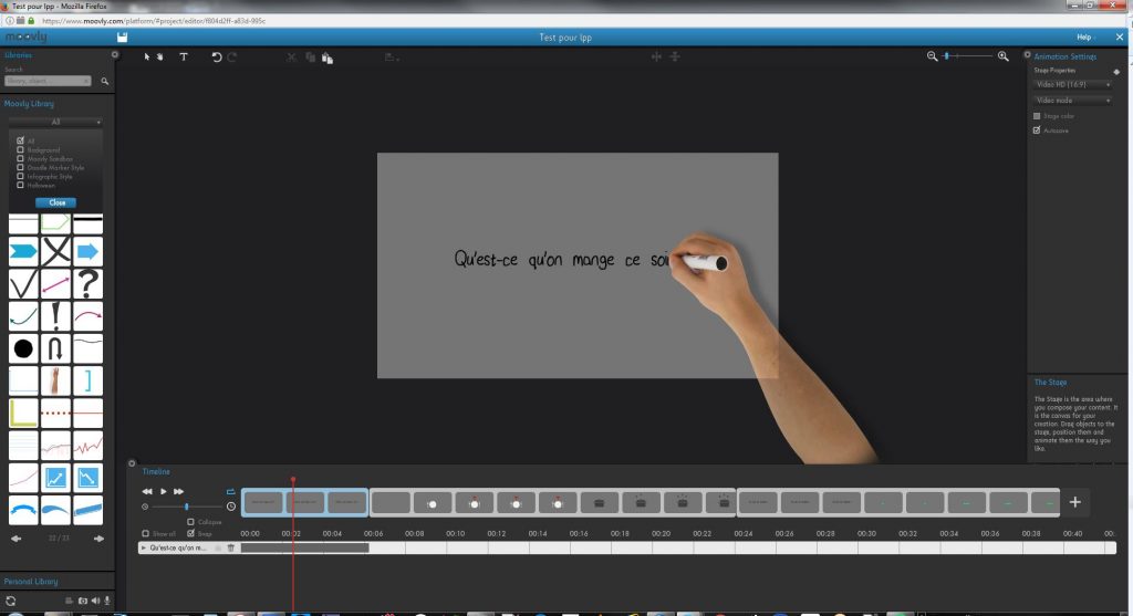Autre chose que j’ai apprécié sur Moovly: l’animation de la main qui écrit (ou qui dessine selon les cas). Je n’ai pas vu cela sur Animaker. Il faudra que j’aille vérifier.