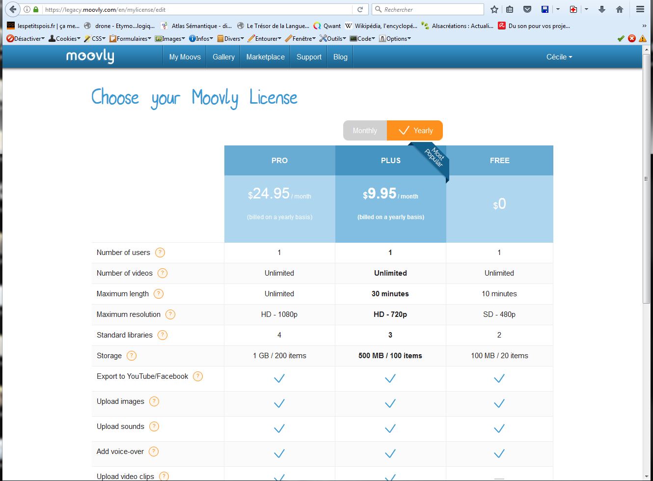 Bien sûr, de la même manière, il y a sur Moovly un plan gratuit et des plans payants: