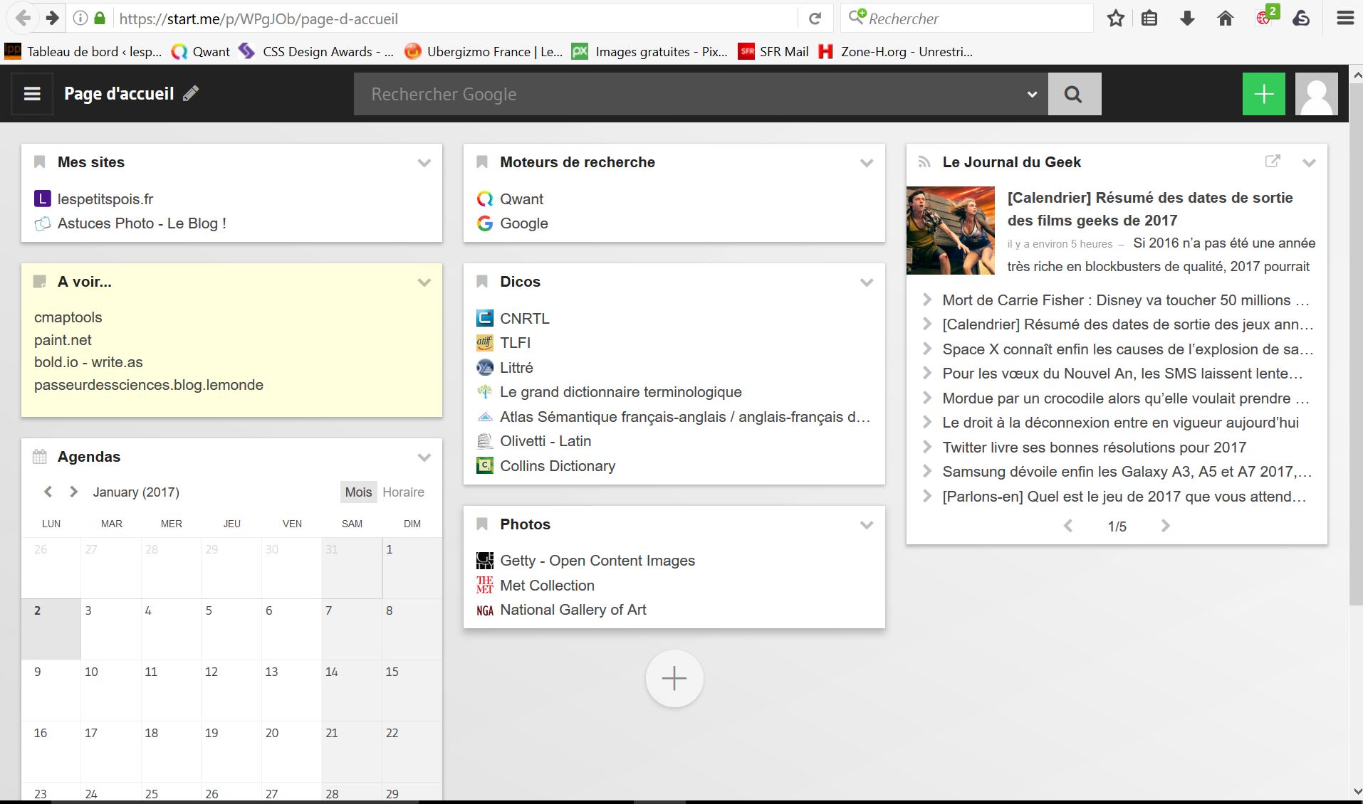 Du coup j’ai dis stop et j’ai décidé de mettre ma page dans le cloud avec start.me…