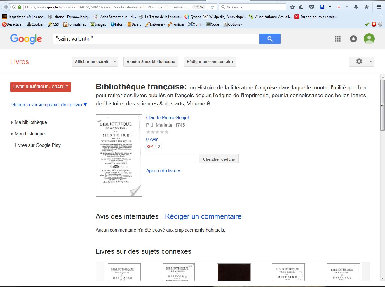 Je vais vous présenter un tableau infiniment plus gracieux dans les poésies de Charles, Duc d'Orléans, petit fils de Charles V. Père de Louis XII et Oncle de François 1er. Ce prince né le 26 Mai 1391 s'appliqua aux lettres dès sa plus tendre jeunesse et s'exerça surtout à la poésie et à l'éloquence.(...) Beaucoup d'autres pièces du même Prince, qui ont toutes l'amour pour objet, font mention du jour de Saint Valentin, ou sont datées de ce jour là et dans quelques-une le poète nomme sa Dame, Sa Valentine. La raison est que le jour de la fête de Saint Valentin, qui se célèbre le 14 février, arrive assez communément durant le temps de Carnaval et qu'en ce même jour c'était un usage dans plusieurs Cours d'Europe, que les cavaliers s’assemblassent pour donner quelques fêtes aux Dames et qu'ensuite on tirât au sort pour assigner à chaque Dame un Cavalier qui était tenu de lui rendre ses services durant une année, d'être à ses ordres, de l'accompagner où elle voulait aller et de l'obliger en tout ce que la politesse et la décence pouvaient exiger: car on assure que cette espèce de servitude volontaire dont les Cavaliers se faisaient honneur et qui durait jusqu'au même jour de Saint Valentin de l'année suivante n'allait pas au delà de ce que je viens de dire.Ces Cavaliers écrivaient, il est vrai des lettres pleines de tendresses à celles qui leur étaient échues en partage; il fallait pour elles des vers amoureux, qui soupirent, se plaignaient et désiraient comme les amants font chez les poètes et dans les romans, mais ce n'était, dit-on, qu'un simple jeu d'esprit auquel le cœur prenait peu part. (...) cet usage était aussi introduit en Angleterre (...) et on ne peut douter qu'il (le Prince) n'ait composé plusieurs des pièces où il en est fait mention, durant sa captivité en ce Royaume.