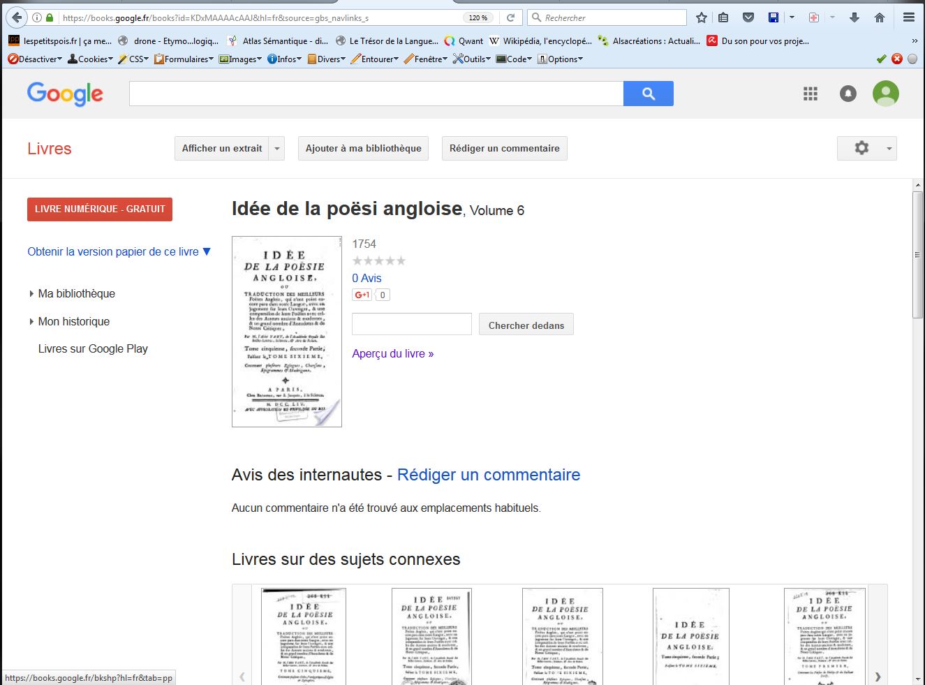 Idée de la poësi angloise, volume 6 - par M. l'abbé Yart, de l'Académie Royale des Belles-Lettres, Sciences et Arts de Rouen - 1754