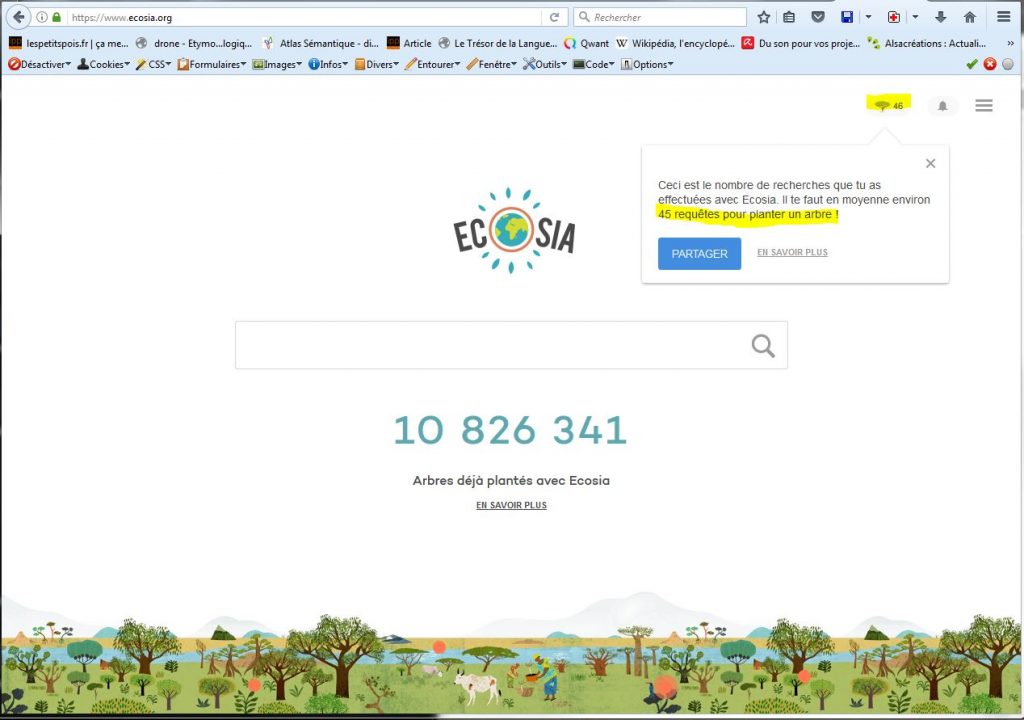 Du coup lpp a passé le cap des 45 requêtes sur ecosia.org: et 1 arbre, 1 !