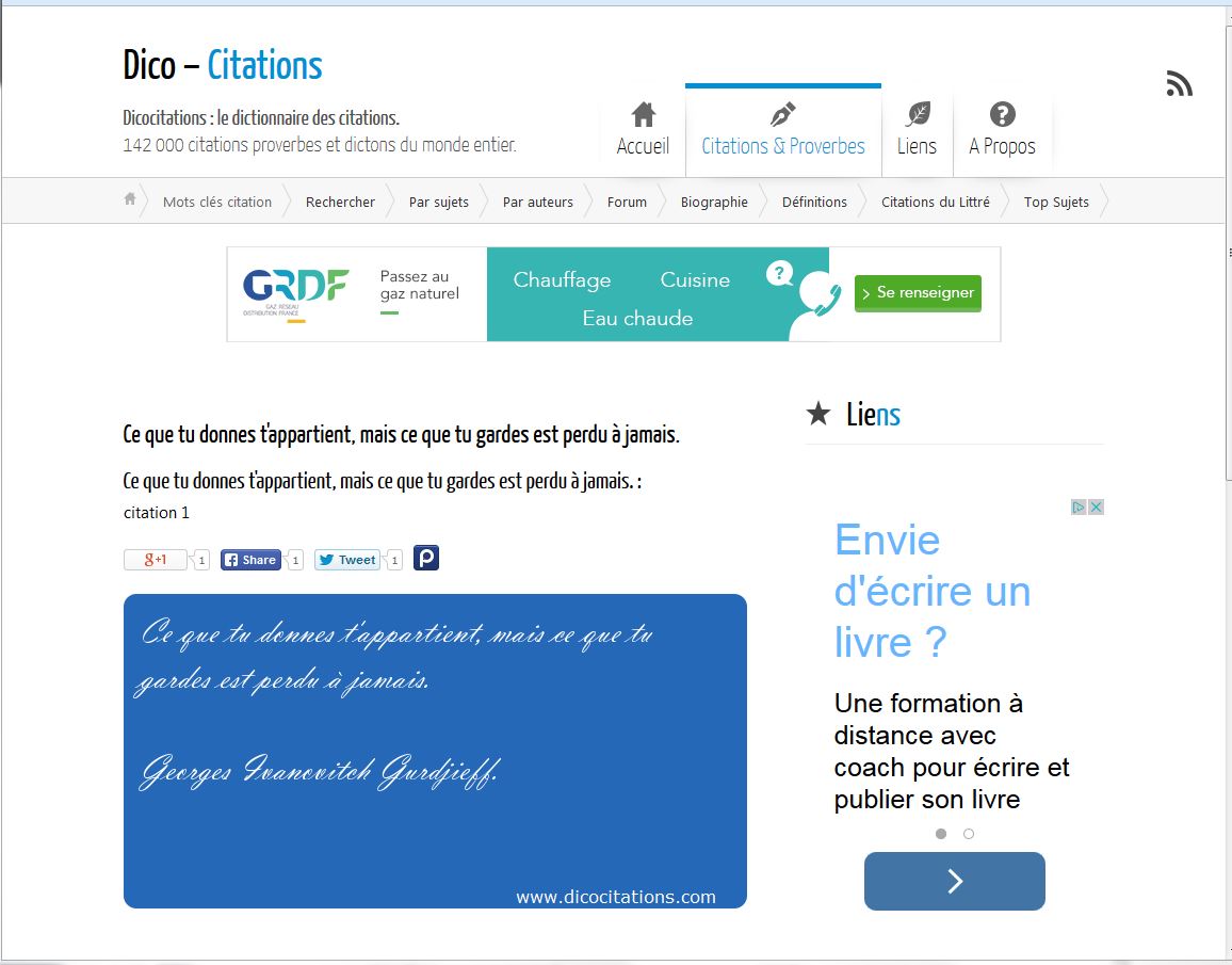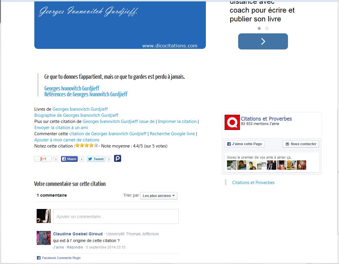 Tout d’abord, le 1er résultat renvoie vers un site web de citations dans lequel on retrouve une phrase approchante attribuée à Georges Ivanovitch Gurdjieff: