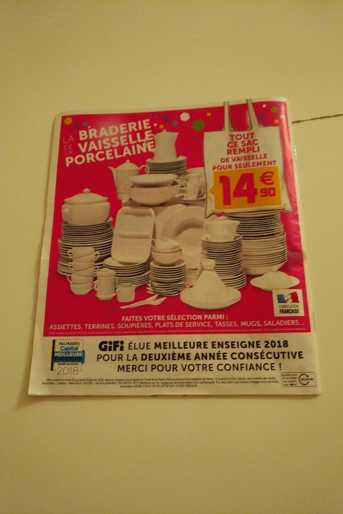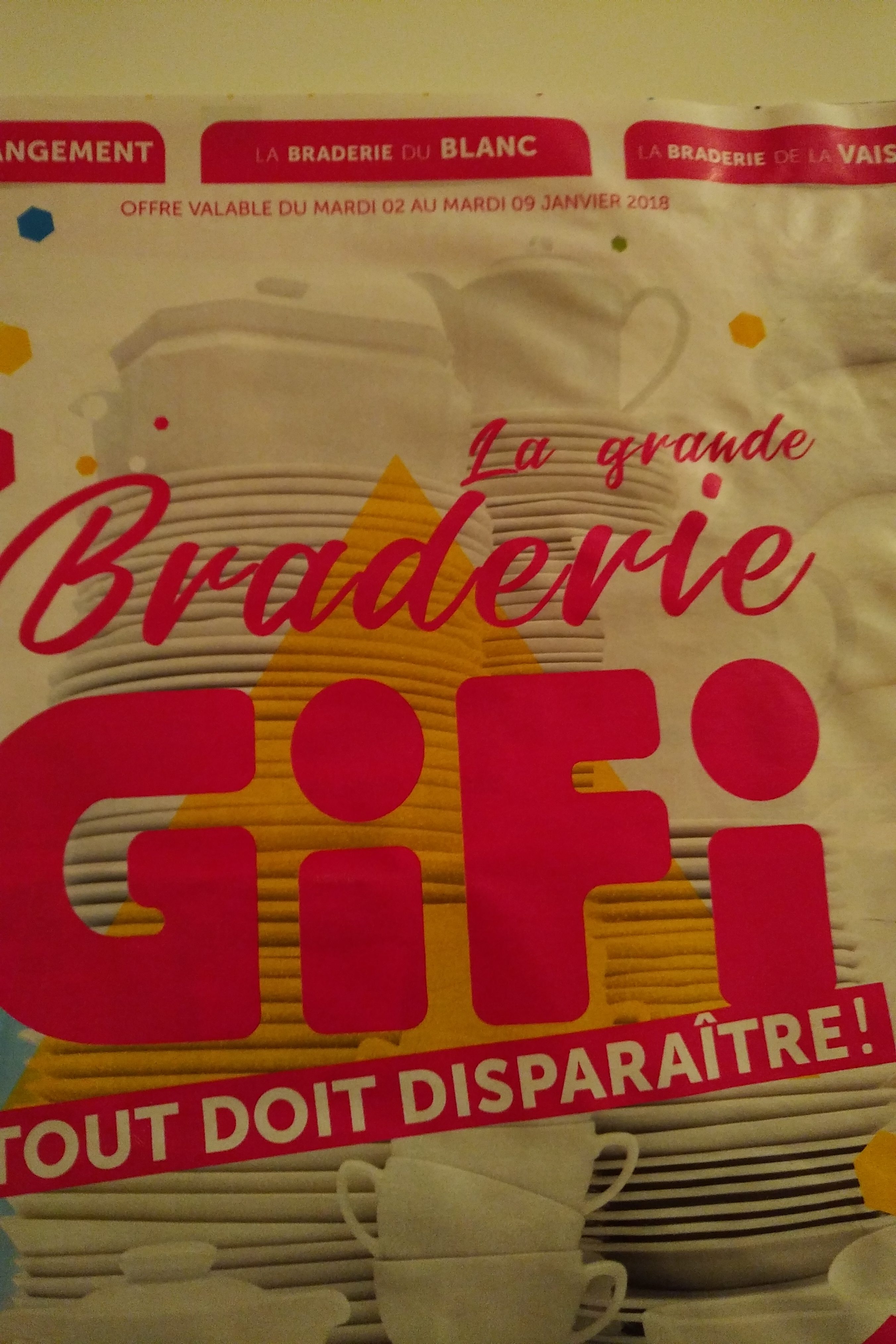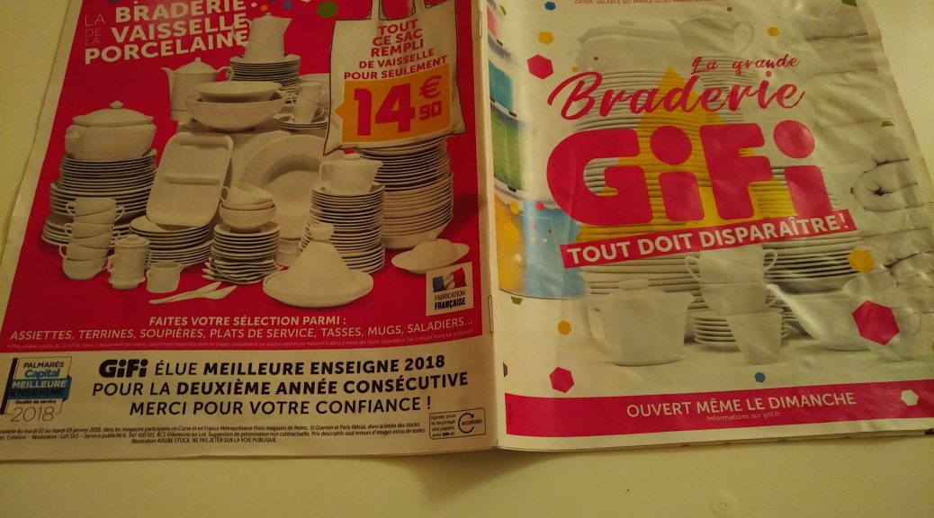 Là, ça m’a percuté le visage: dans la brochure publicitaire GIFI du 02 au 09 janvier, autrement dit la 1ère brochure de l’année 2018 donc,