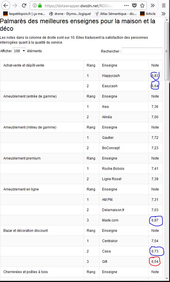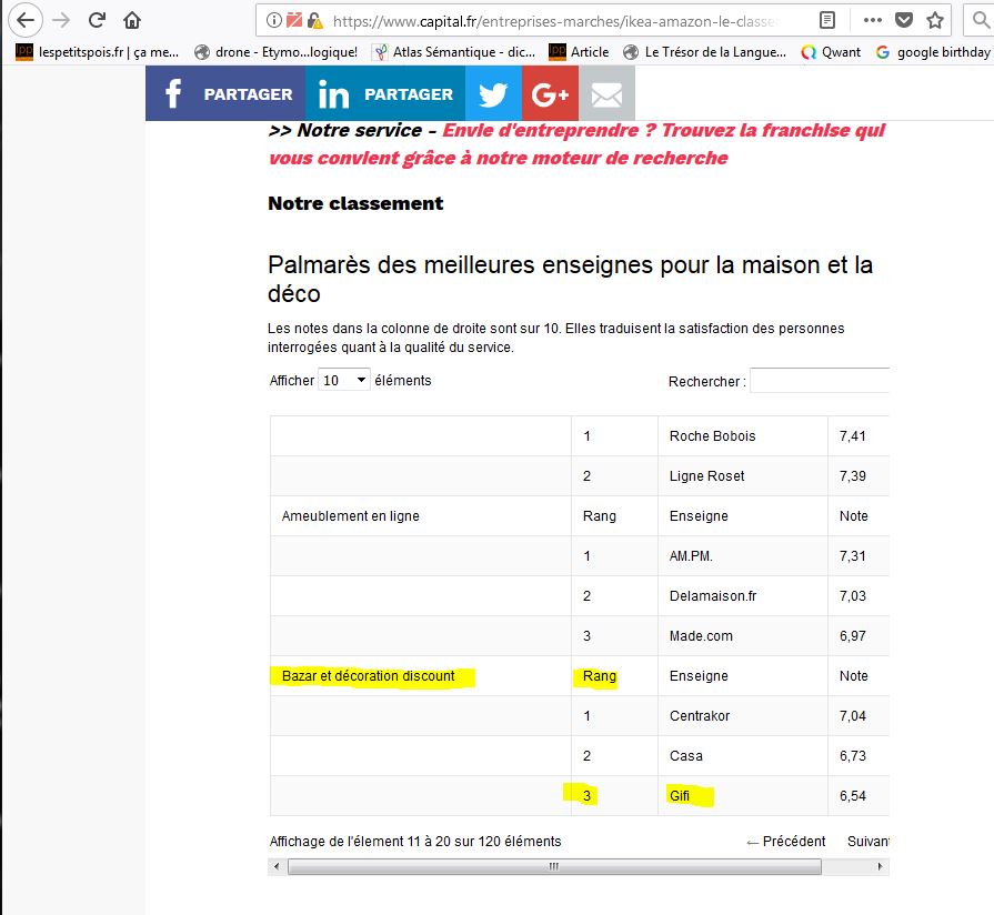 Faut-il ajouter que toute “sous-catégorie maison & déco” confondues ( 120 enseignes…) , avec 6.54 point, GIFI a la plus mauvaise note … ?