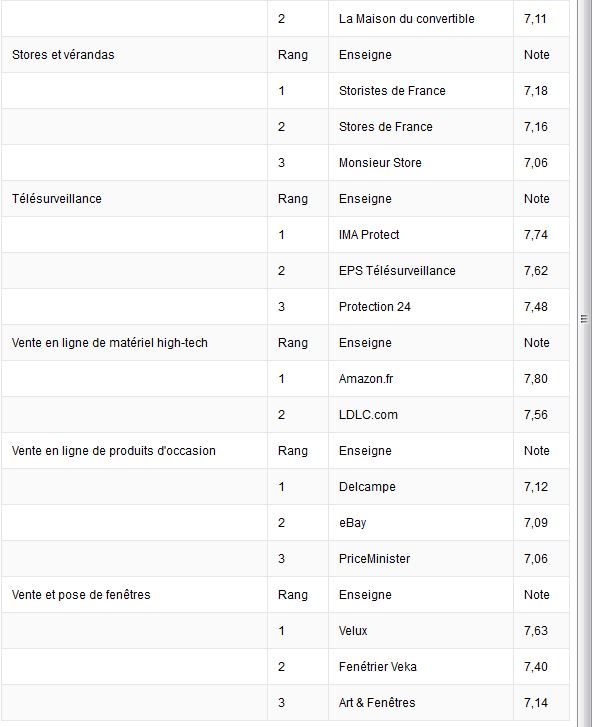 Tous les classements: https://www.capital.fr/evenement/le-palmares-2018-des-meilleures-enseignes