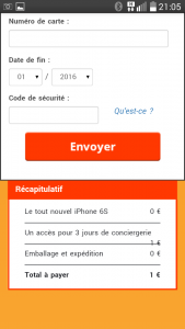 Mon cadeau: un iphone 6S ! Il suffit que je leur file mes coordonnées et mon n° de carte bancaire! Ben voyons…