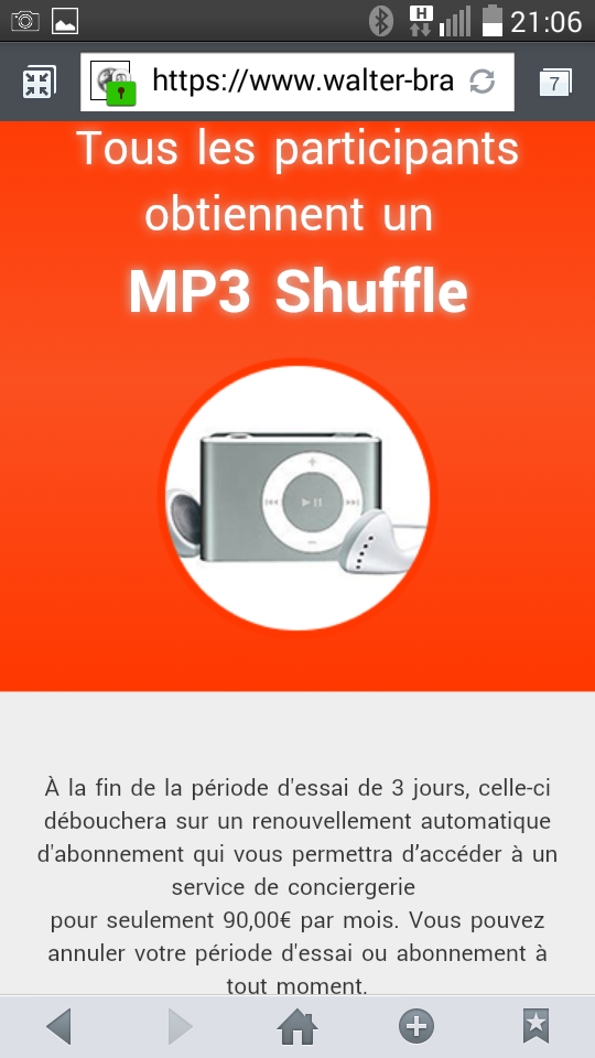 Des personnes se sont fait avoir et l’ont mauvaise: http://communaute.orange.fr/t5/prot%C3%A9ger-mes-donn%C3%A9es-et-mon/Offre-iphone-1-Walter-Brand-com/td-p/896569