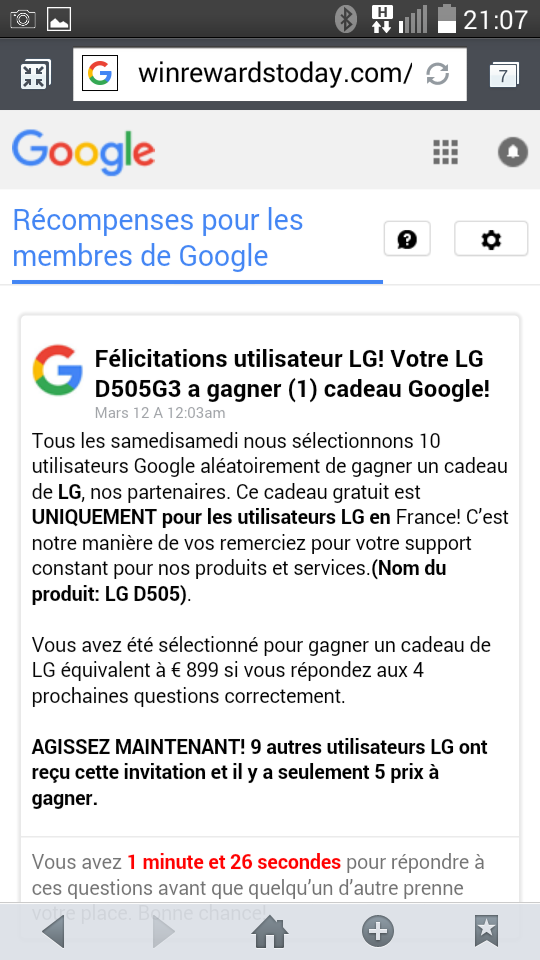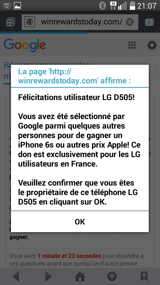 L’arnaque commence aux couleurs de Google et cible mon téléphone portable; c’est du lourd !