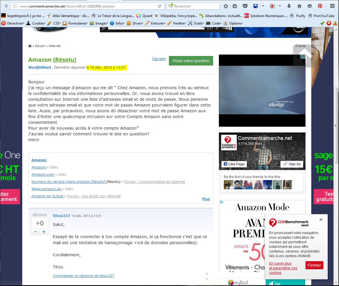 Reçu ce jour un mail très étonnant d’Amazon me demandant de changer mon mot de passe: