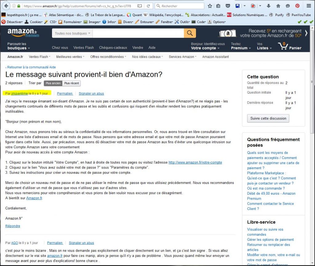 Il semblerait donc que ce ne soit pas une tentative de phishing mais un vrai mail d’Amazon…