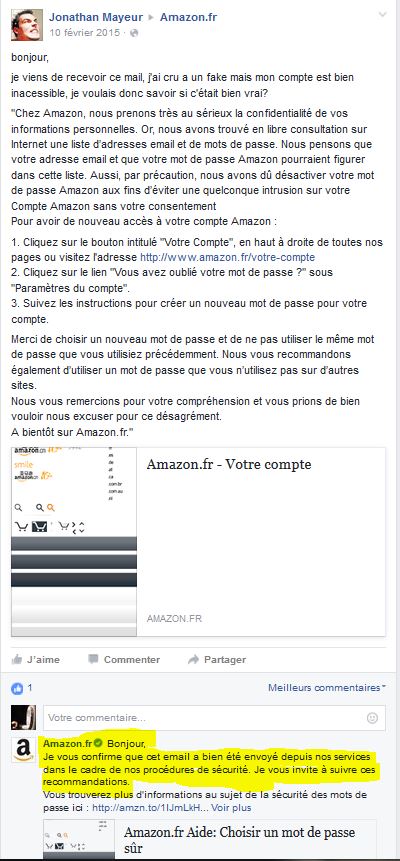 Dans un dernier sursaut de recherche: la page facebook d’Amazon: