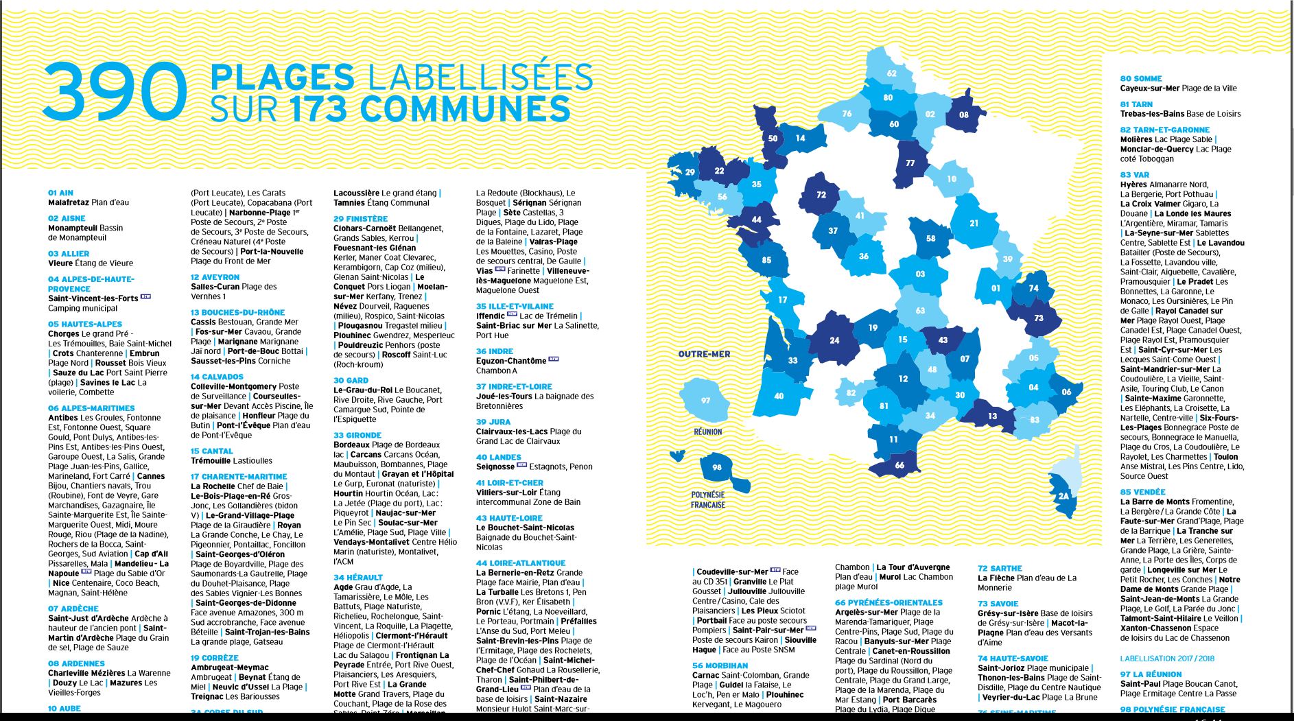 Vous pouvez trouver la liste des plages labellisées là: http://www.pavillonbleu.org/category/3-presse.html?download=157