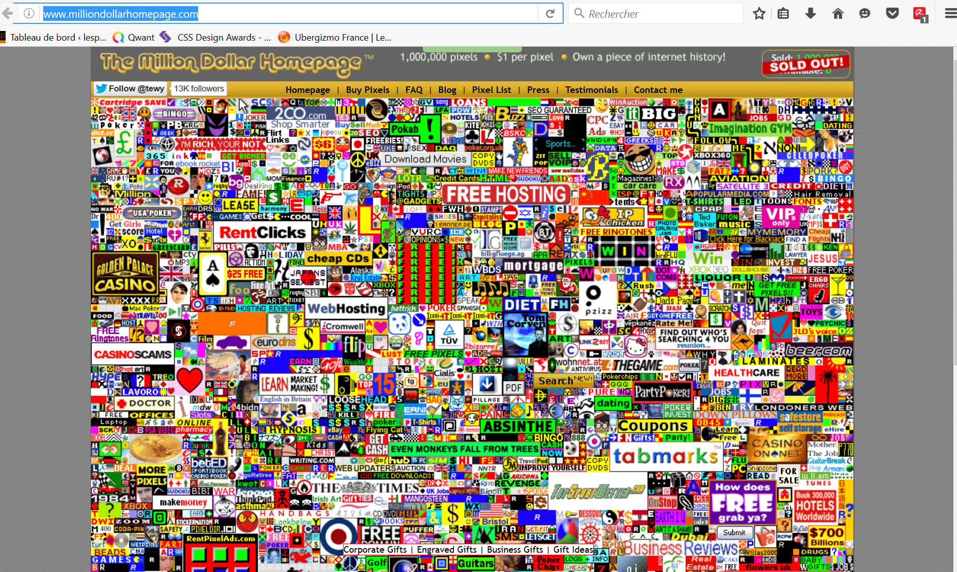 Pour ceux qui ont besoin d’un rafraichissement de mémoire ou pour ceux qui n’étaient pas en âge de faire du web: https://fr.wikipedia.org/wiki/The_Million_Dollar_Homepage