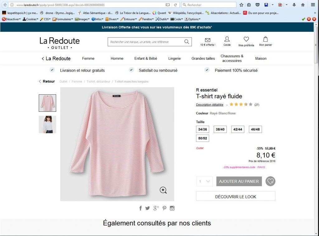 2/ En outre, le même produit est vendu à la fois sur le site de la Redoute outlet et sur celui de la Redoute ; au même prix.