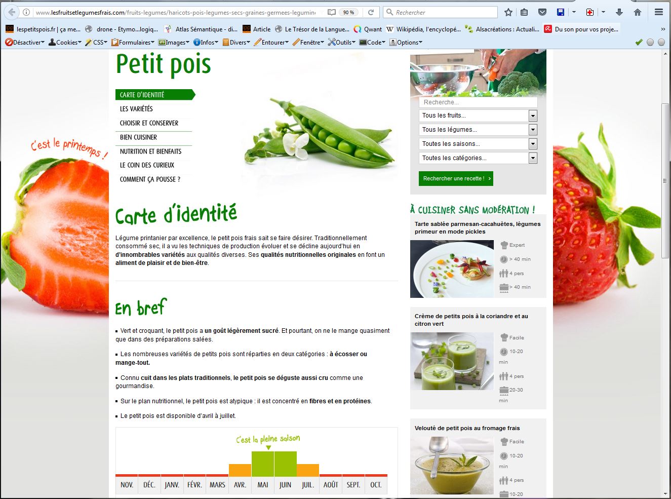 « Le chapitre des pois dure toujours : l’impatience d’en manger, le plaisir d’en avoir mangé, et la joie d’en manger encore, sont les trois points que nos princes traitent depuis quatre jours. Il y a des dames qui après avoir soupé avec le roi, et bien soupé, trouvent des pois chez elles pour manger avant de se coucher, au risque d’une indigestion : c’est une mode, une fureur, et l’une suit l’autre. »