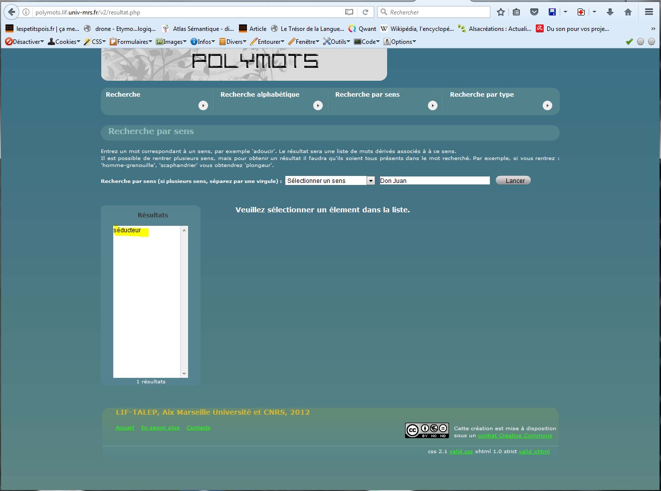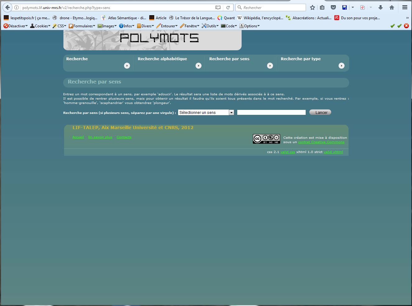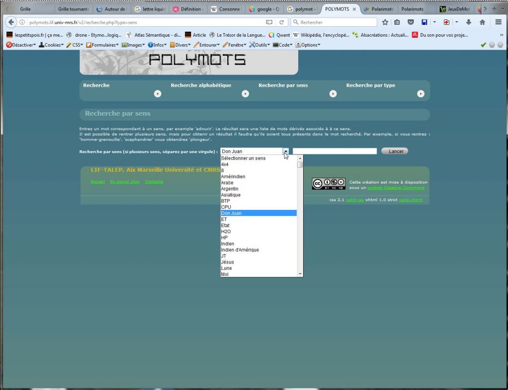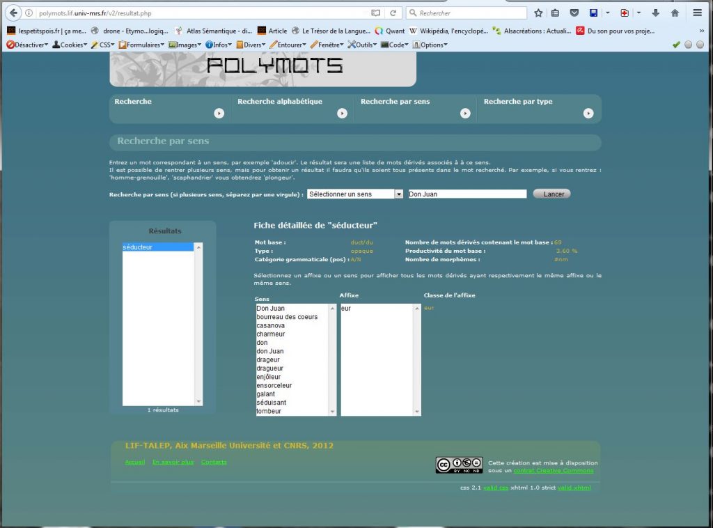 Bref, ces outils là, le plus souvent, on y tombe dessus totalement par hasard. Et tadam, le hasard a frappé aujourd’hui. Il m’a présenté Polymots, un outil qui traite des variations lexicales des mots.