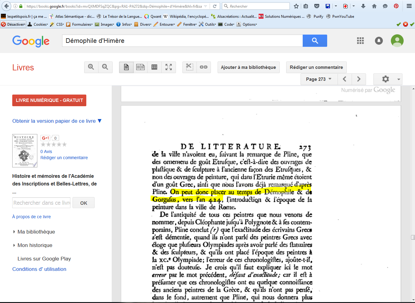 Démophile d’Himère était un peintre Sicilien vers l’an 424 selon Pline: Histoire et mémoires de l’Académie des Inscriptions et Belles-Lettres