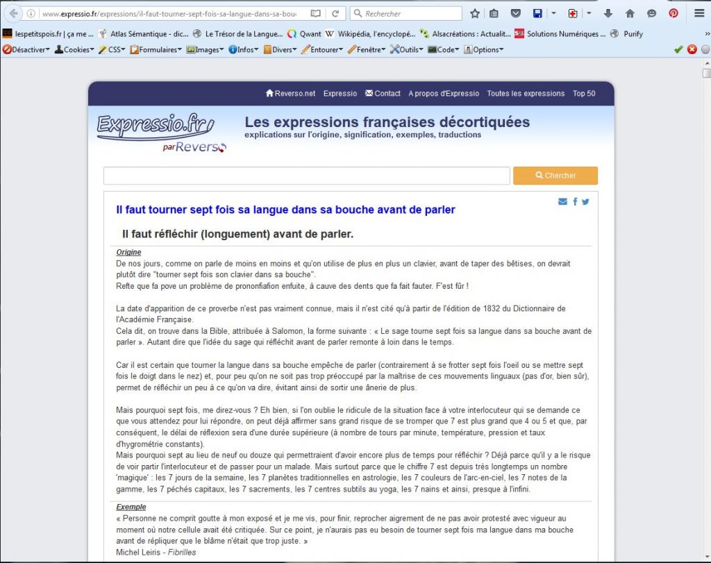 Cela dit, on trouve dans la Bible, attribuée à Salomon, la forme suivante : « Le sage tourne sept fois sa langue dans sa bouche avant de parler ».