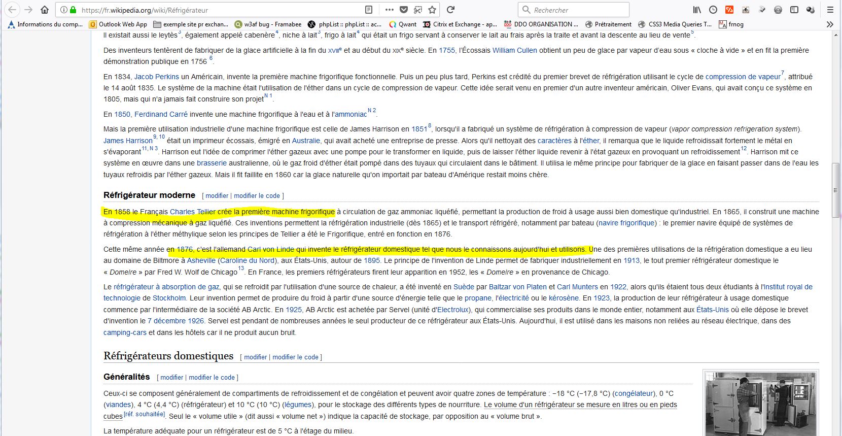 frigorifique apparaît bien avant: