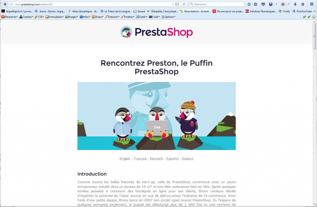 En lançant sa version 1.6 en 2015, Prestashop avait également changé son identité visuelle en présentant son nouveau logo et sa mascotte: un Macareux moine du nom de Preston.