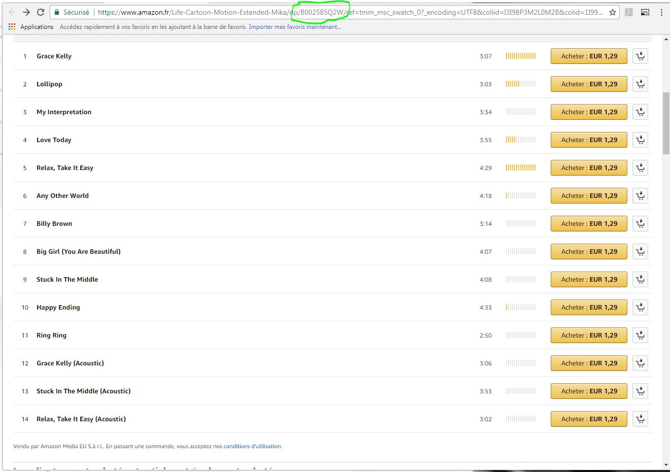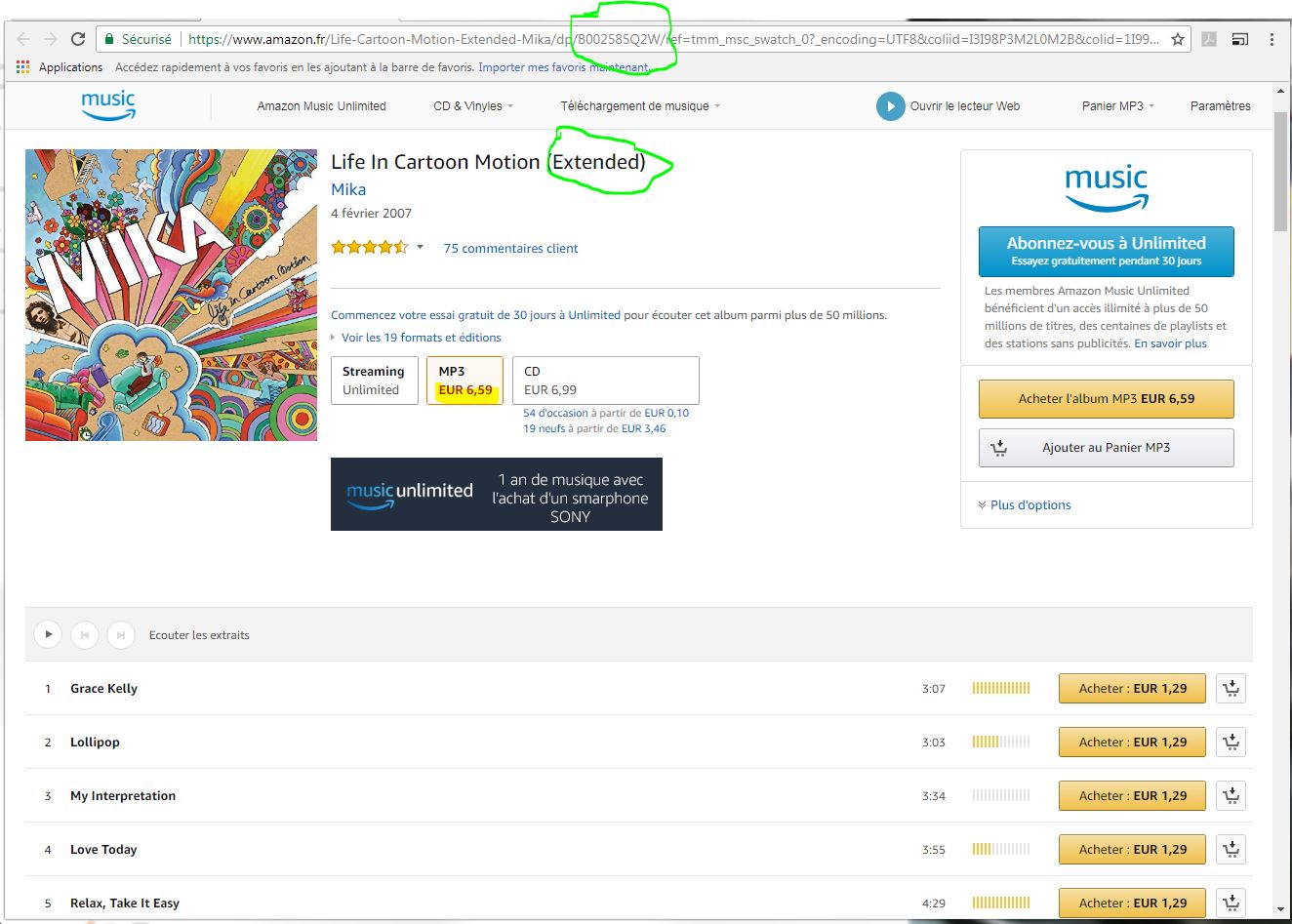 … par contre, je n’ai pas compris pourquoi le mp3 de 14 chansons (extended) – 6.59 € – c’est 4 chansons de plus pour 3.40 € de moins … quel intérêt pour Amazon ?