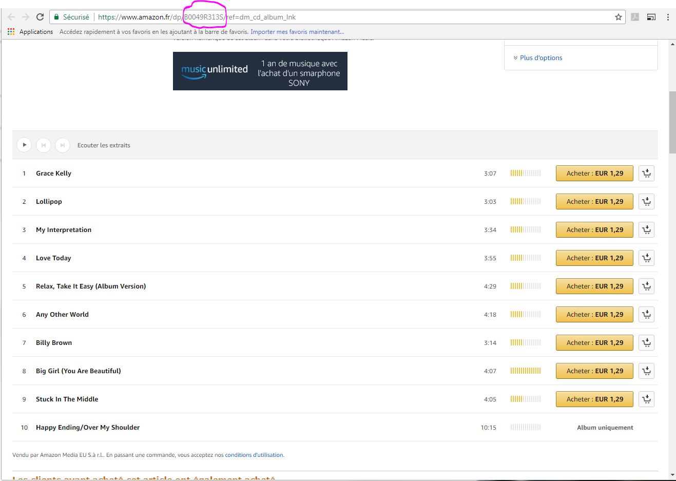 3/ Enfin, le mp3 à 9.99 € t’envoie vers la page :