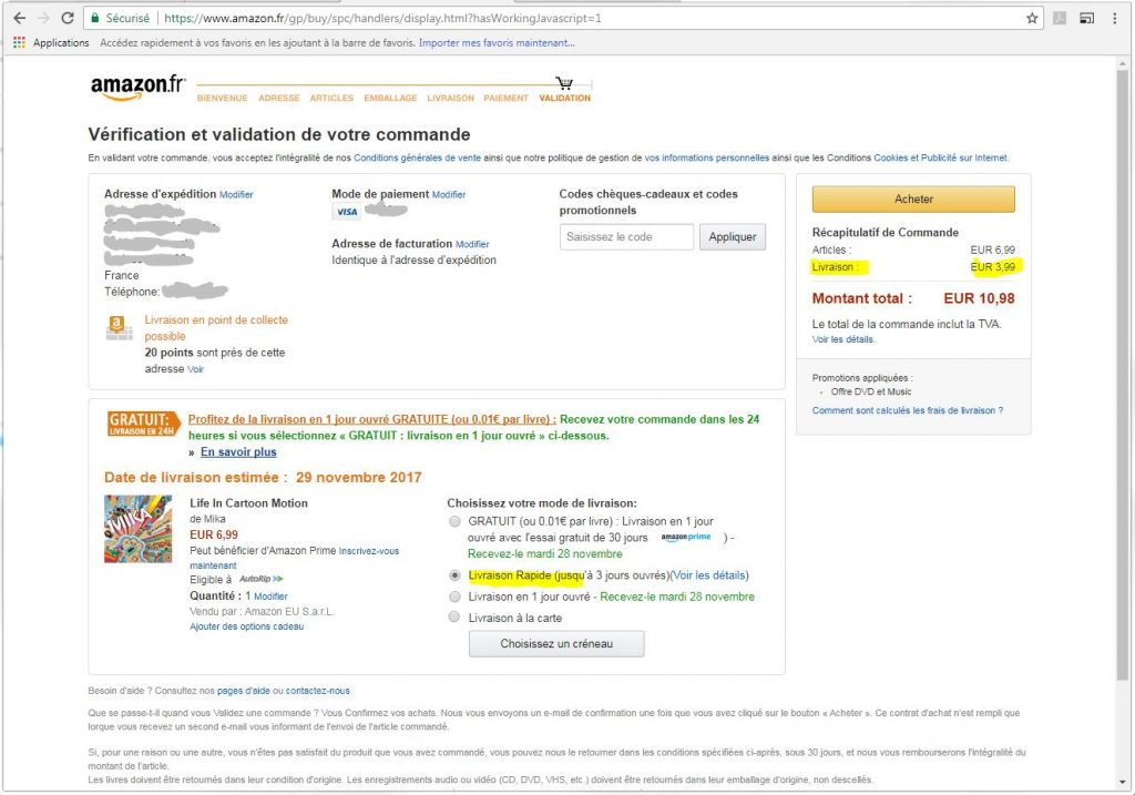 Alors, certes, dans cette histoire, je ne prends pas en compte les frais de livraison. Elle n’est gratuite qu’à partir de 25€… ou tu as l’option prime (qui est gratuite pendant 30 jours et que tu peux annuler à tout moment… – testée et approuvée par Lpp):