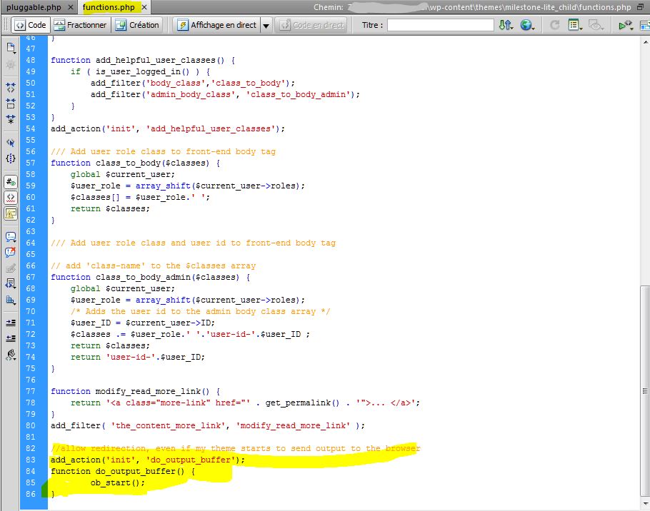 Warning: Cannot modify header information - headers already sent by (output started at ...) in ...\pluggable.php on line 1210