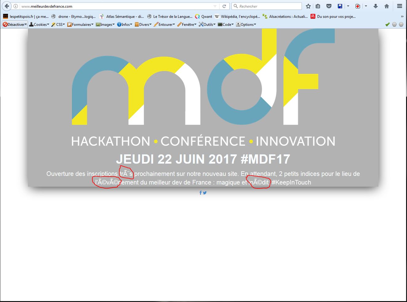 ..reste à savoir si les erreurs de codage qui apparaissent sur cette page font parties des indices concernant le futur lieu du concours… où si le meilleur dev’ de France était malade le jour de la mise en ligne de la page…
