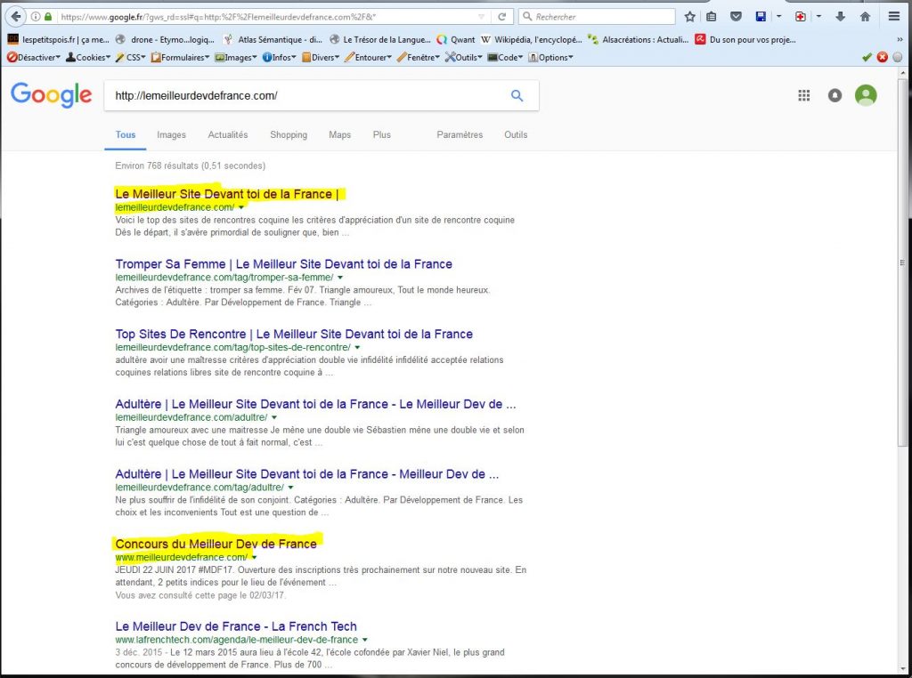 Et effectivement, le site du meilleur dev de france montait en 2015 sur www.lemeilleurdevdefrance.com: