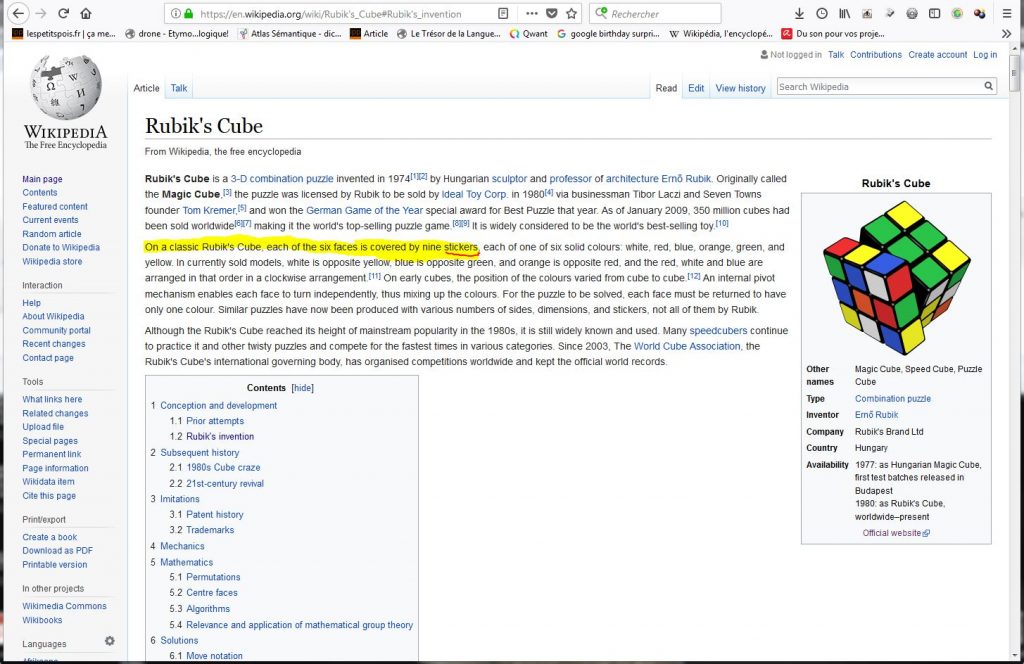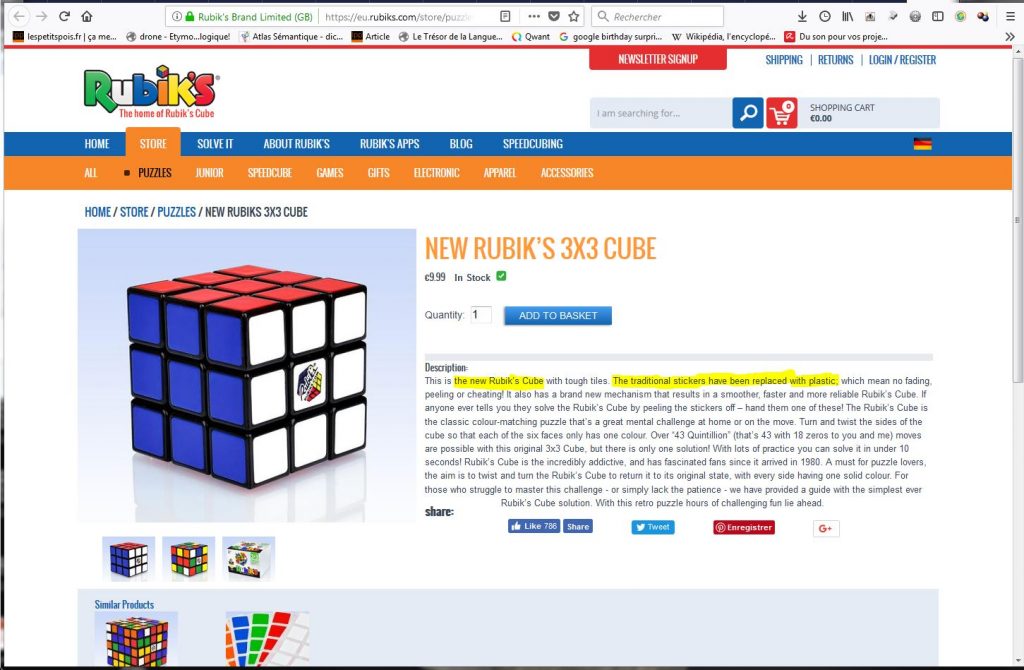 Alors, effectivement, les faces des premiers Rubik’s Cube étaient colorées par des stickers: