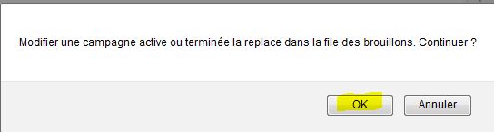 Cliquer sur le bouton “OK” du message qui s’affiche (informant que la campagne va être placée dans les brouillons); |