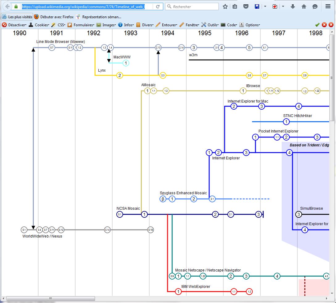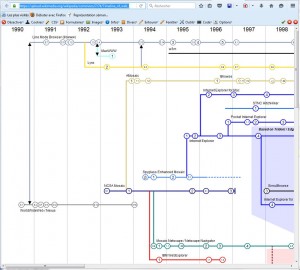 Statique mais à jour: https://upload.wikimedia.org/wikipedia/commons/7/74/Timeline_of_web_browsers.svg